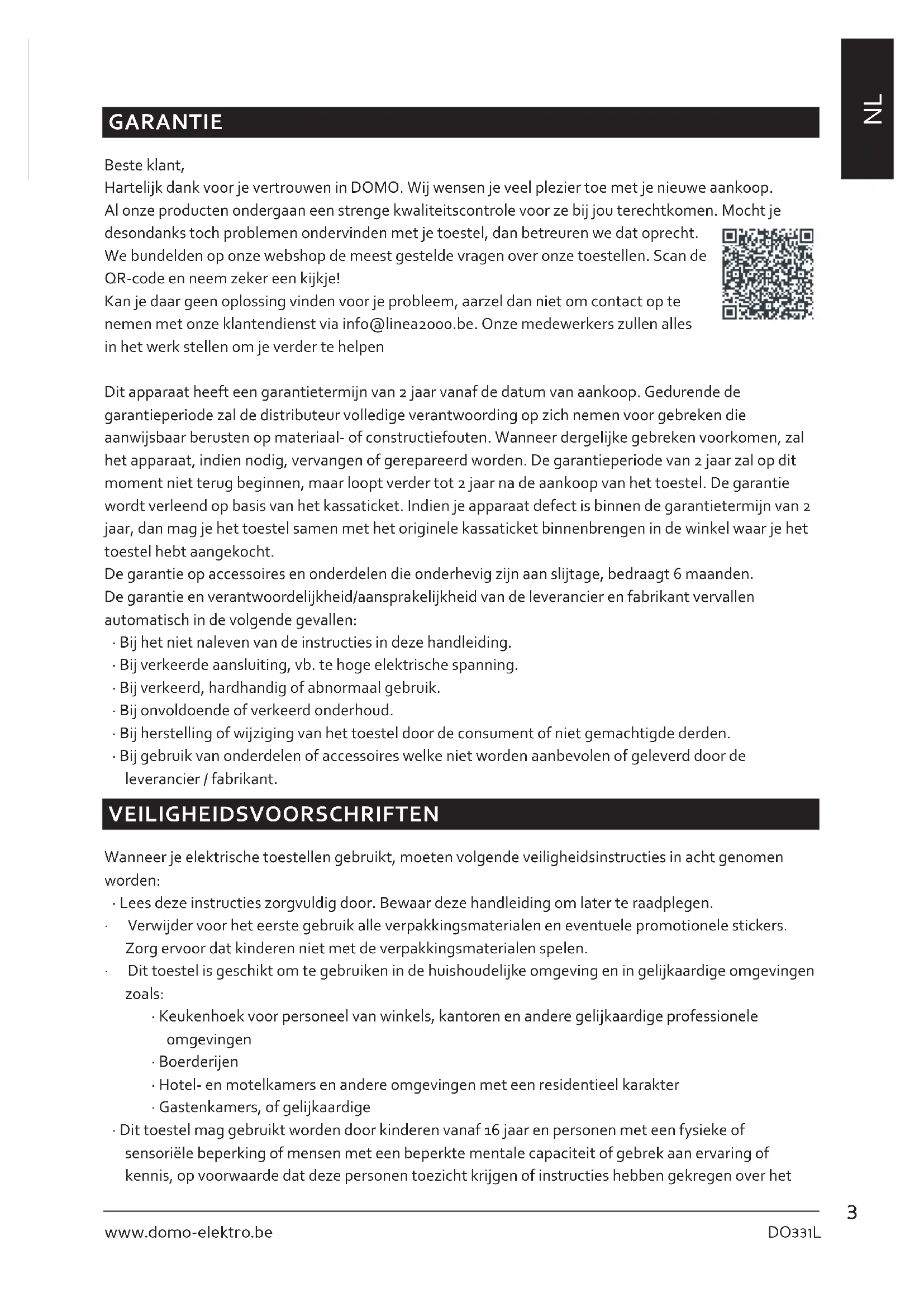 GEBRUIKSAANWIJZING DO331L DOMO