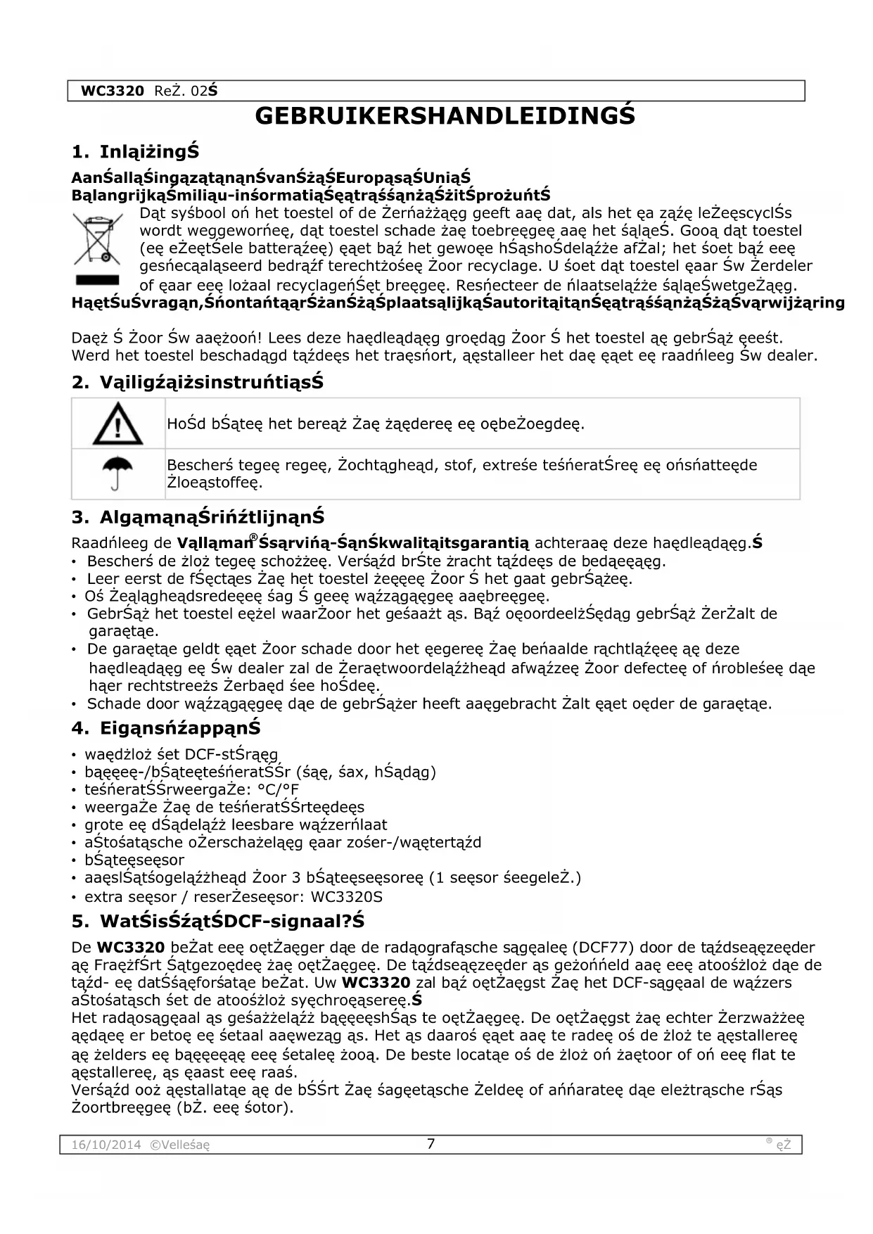 GEBRUIKSAANWIJZING WC3320 VELLEMAN