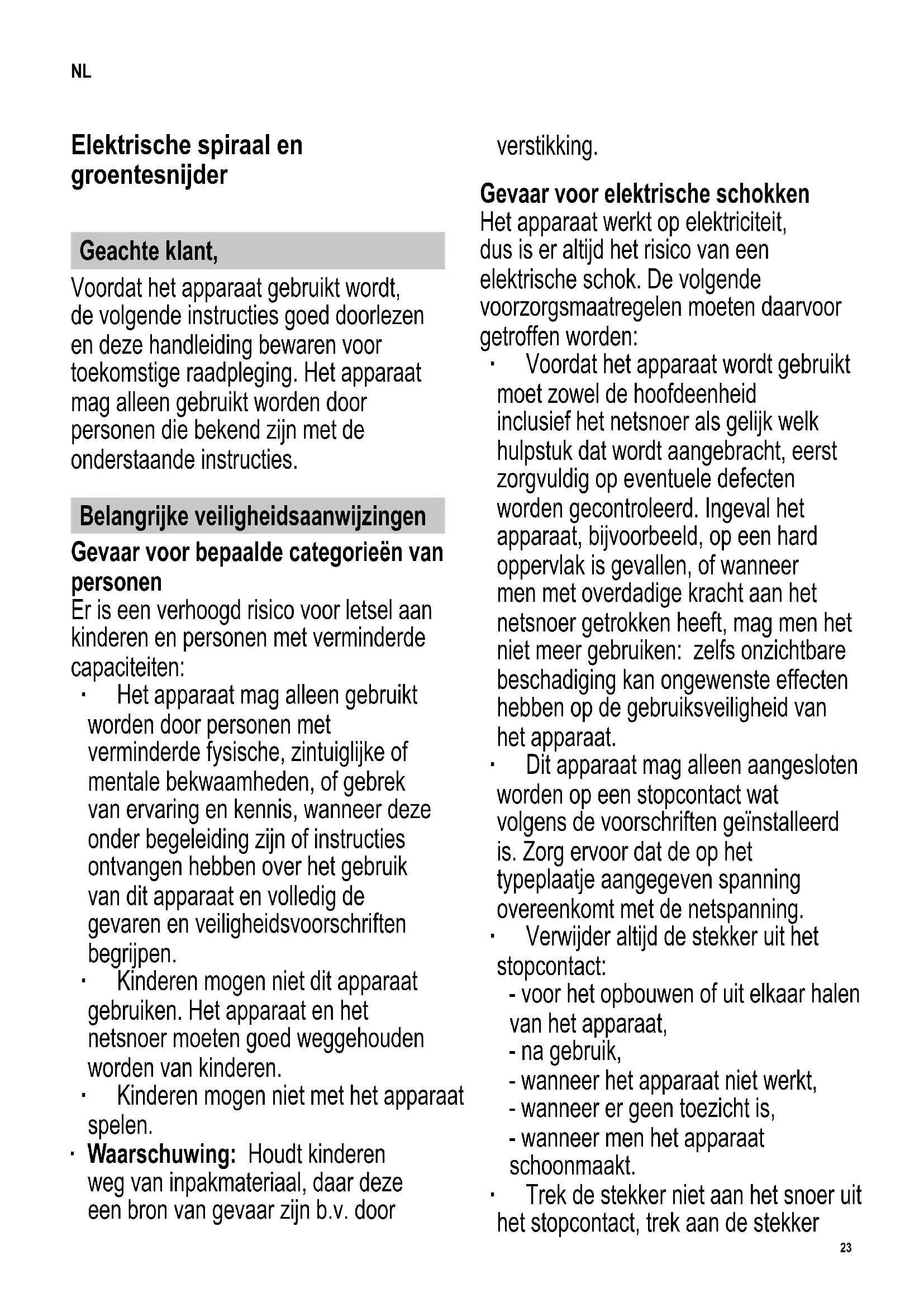 NL Gebruiksaanwijzing Elektrische spiraal en groentesnijder 23