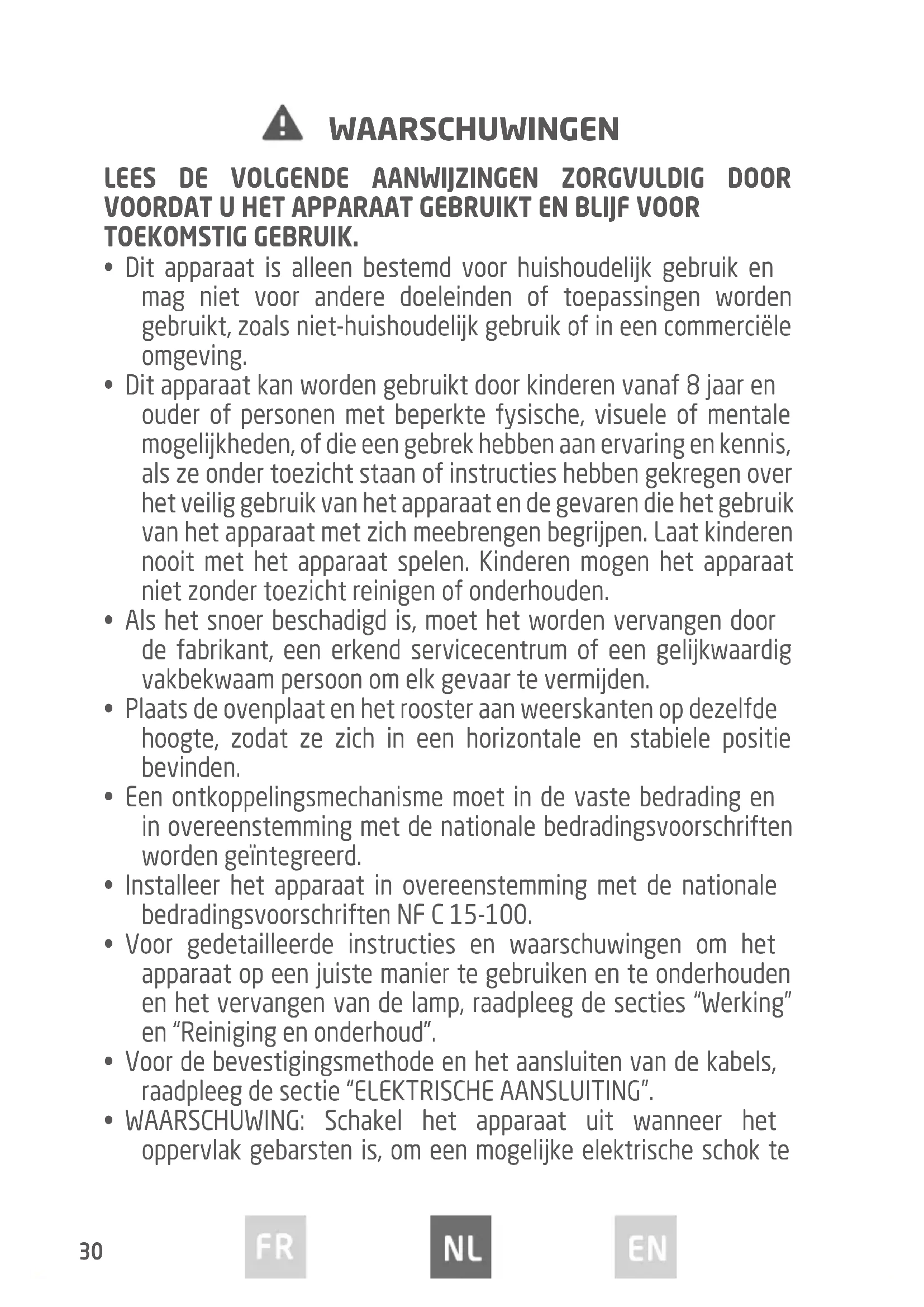 - WAARSCHUWING: De toegankelijke delen kunnen tijdens de werking heet worden. Houd jonge kinderen uit de buurt.32
