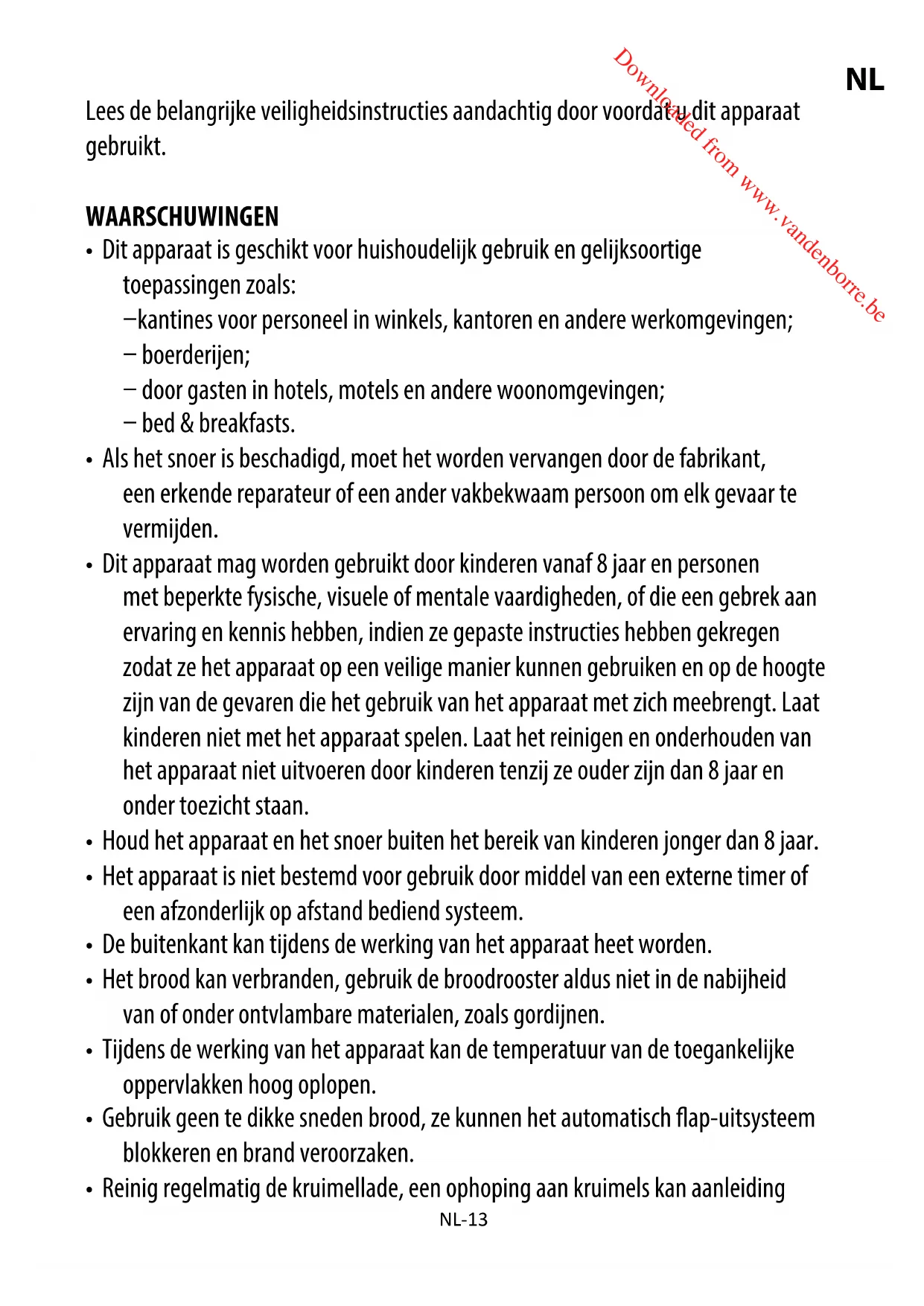 - Stop geen met folie omwikkelde etenswaren in de broodrooster. ONDERDELEN Downloaded from www.vandenborre.beNL-15