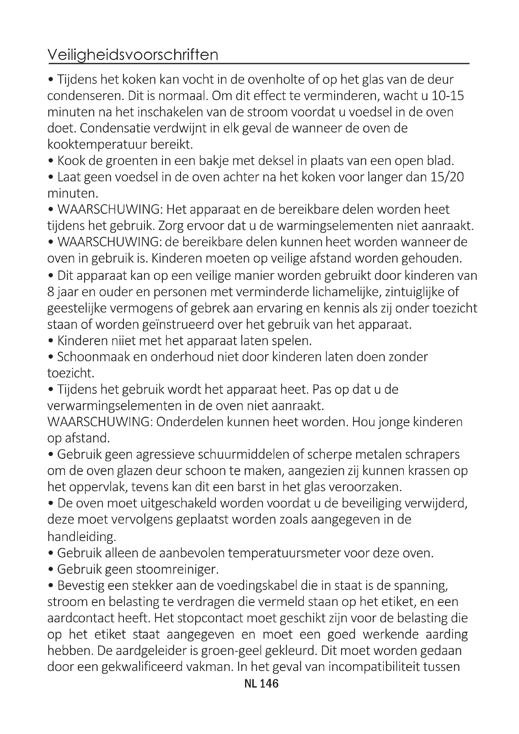 - WAARSCHUWING: de bereikbare delen kunnen heet worden wanneer de oven in gebruik is. Kinderen moeten op veilige afstand worden gehouden.