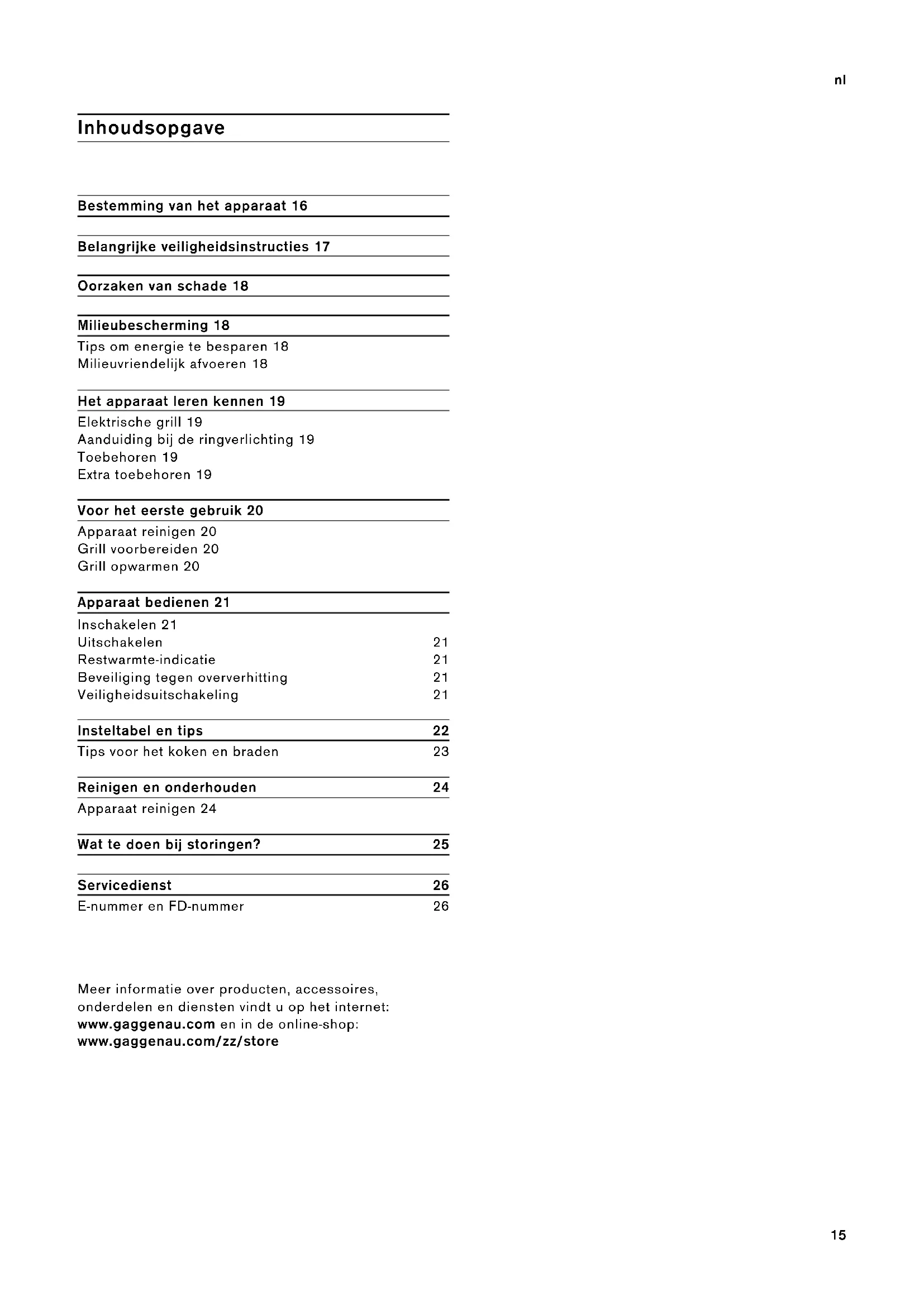 Gebruik uitsluitend de voor dit apparaat bestemde, originele toebehoren. Gebruik geen grillschalen of aluminiumfolie. Hierdoor wordt het grillrooster beschadigd.