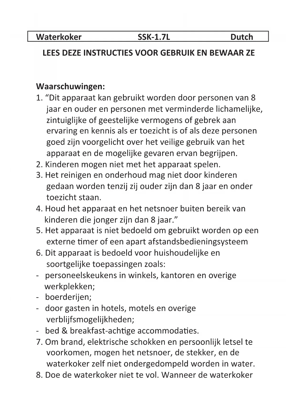 GEBRUIKSAANWIJZING SSK1.7L AFK