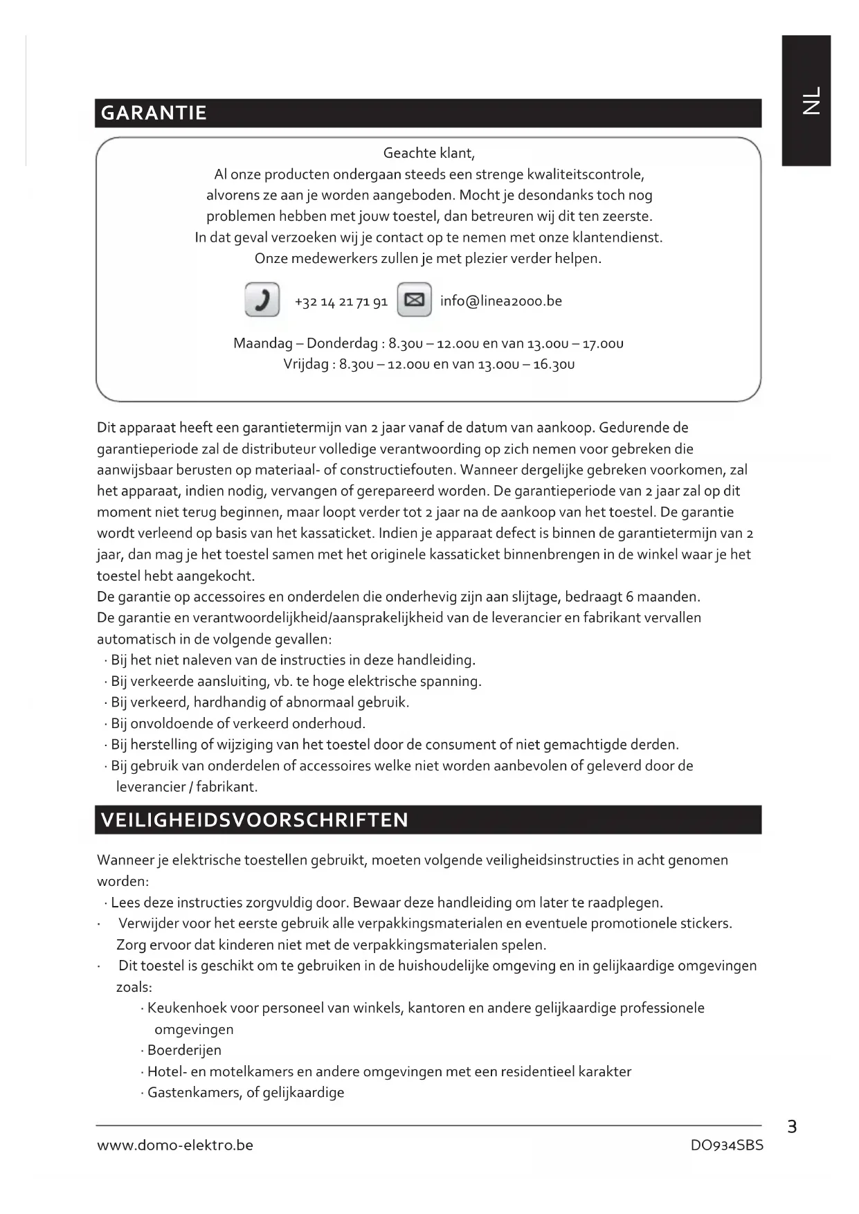 GEBRUIKSAANWIJZING DO934SBS DOMO