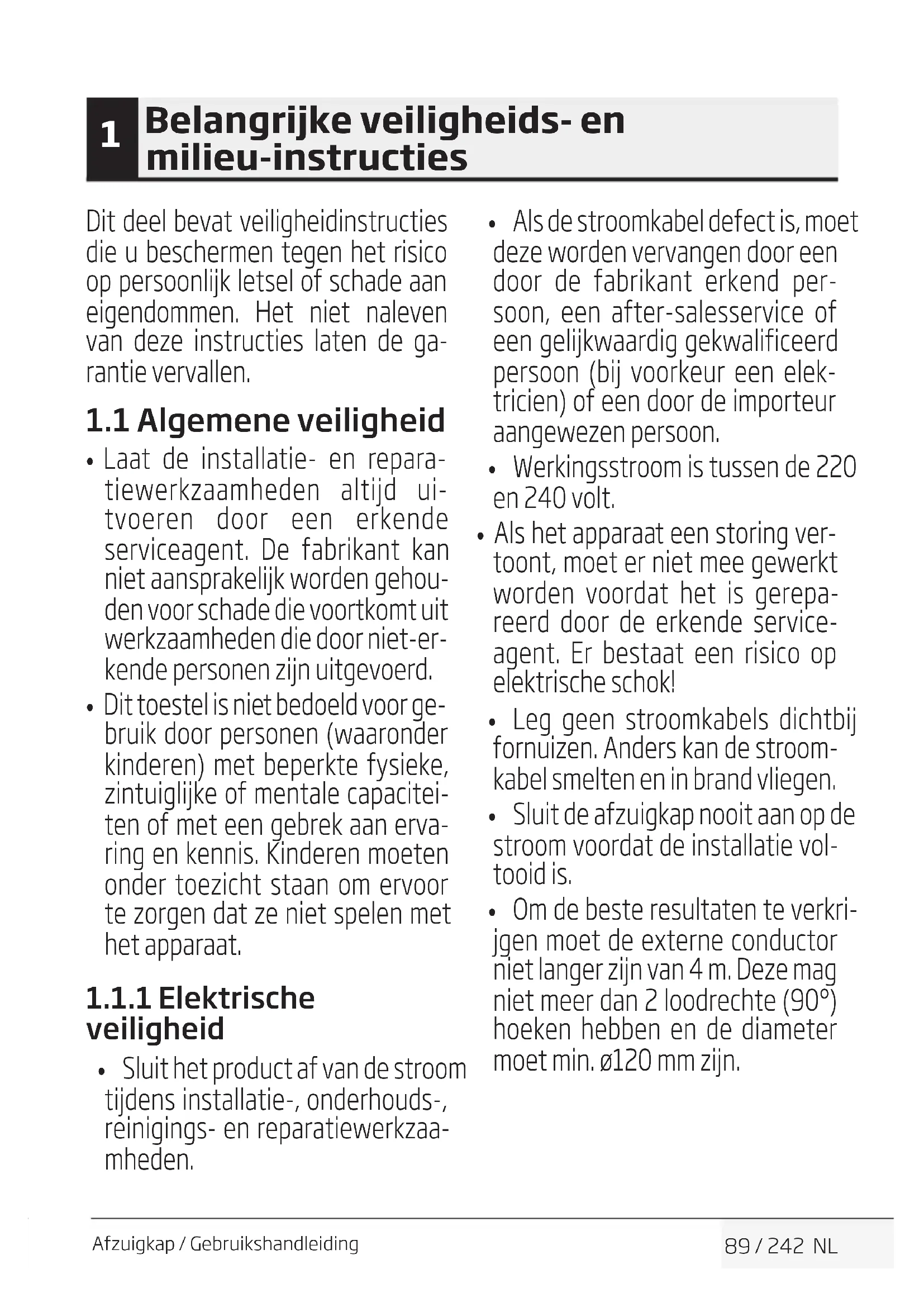 Belangrijke veiligheids- en milieu-instructies92 / 242 NL Afzuigkap / Gebruikshandleiding