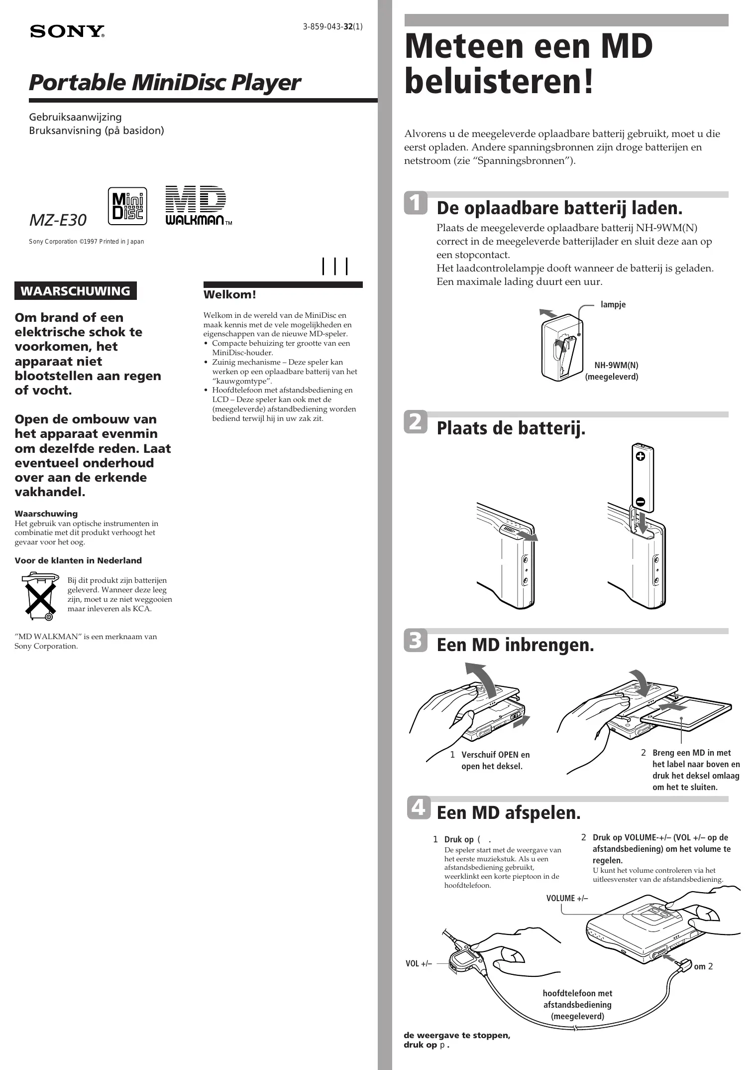 Download de handleiding voor uw Lecteur MiniDisc in PDF-formaat gratis! Vind uw handleiding MZ-E30 - SONY en neem uw elektronisch apparaat weer in handen. Op deze pagina staan alle documenten die nodig zijn voor het gebruik van uw apparaat. MZ-E30 van het merk SONY.