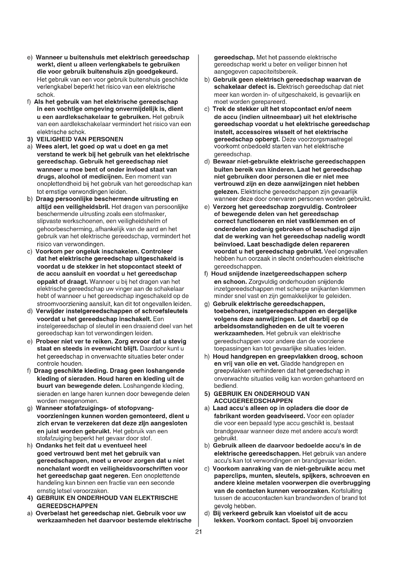 GEREEDSCHAPPEN a) Overbelast het gereedschap niet. Gebruik voor uw werkzaamheden het daarvoor bestemde elektrische22