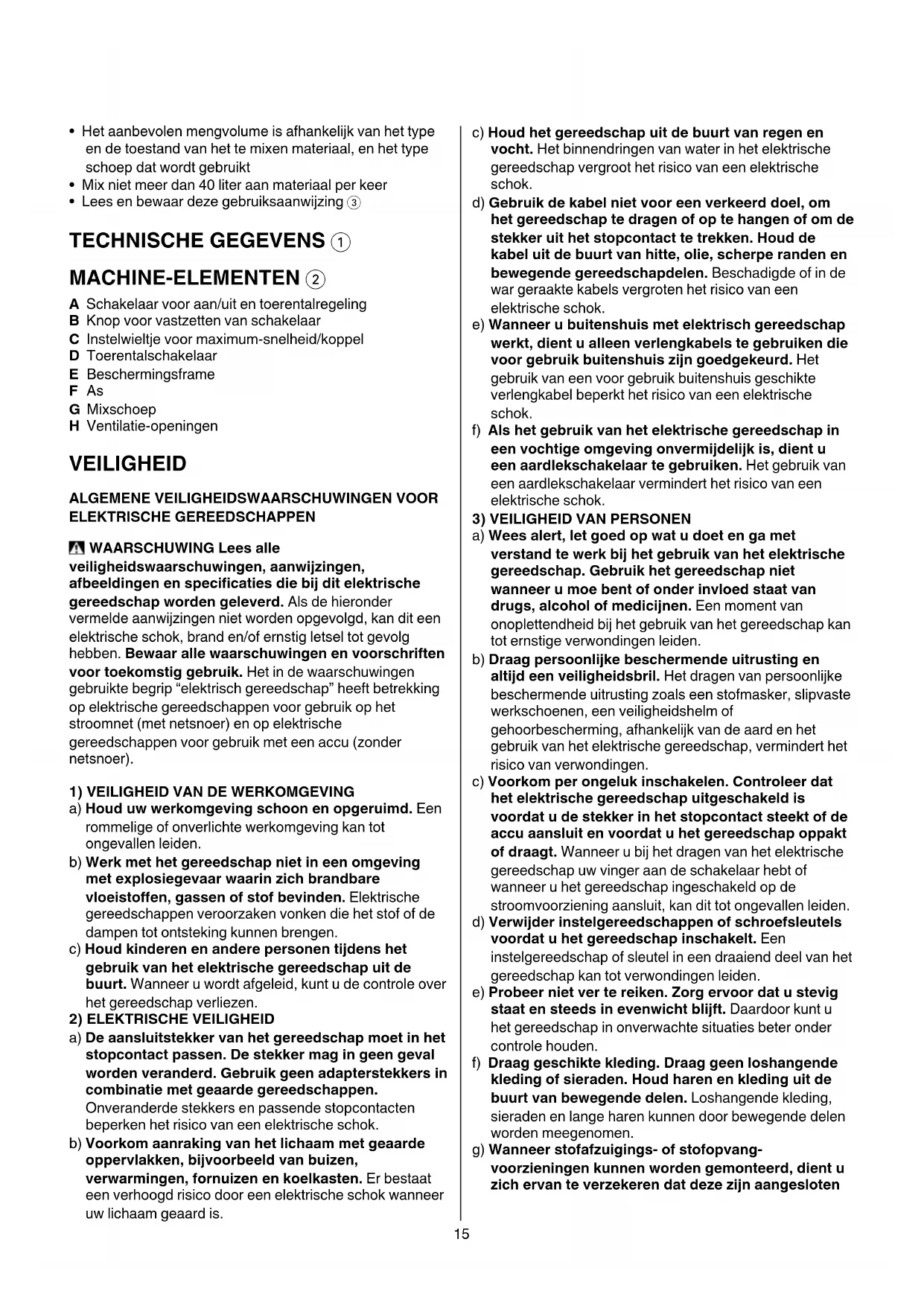 VEILIGHEIDSVOORSCHRIFTEN VOOR MIXERS