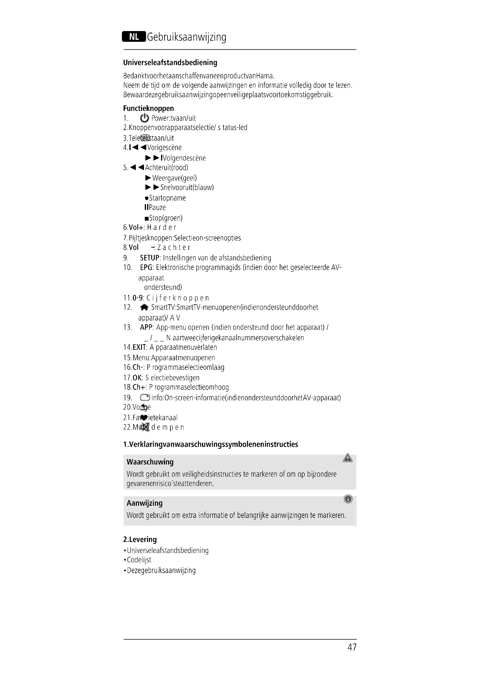 1. Verklaring van waarschuwingssymbolen en instructies