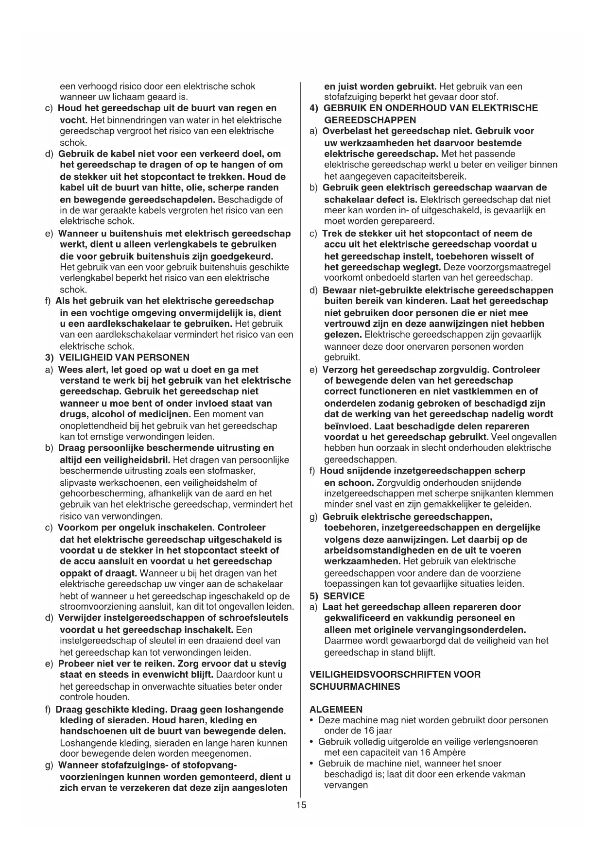 4) GEBRUIK EN ONDERHOUD VAN ELEKTRISCHE