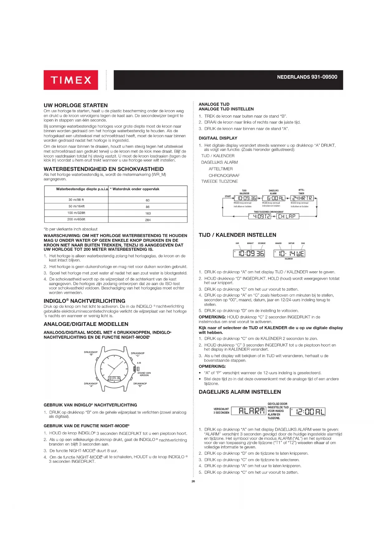 www.timex.eu/en_GB/productWarranty.html ©2019 Timex Group USA, Inc. TIMEX, INDIGLO en NIGHT-MODE zijn gedeponeerde handelsmerken van Timex Group B.V. en zijn dochterondernemingen…29 中文 931-09500