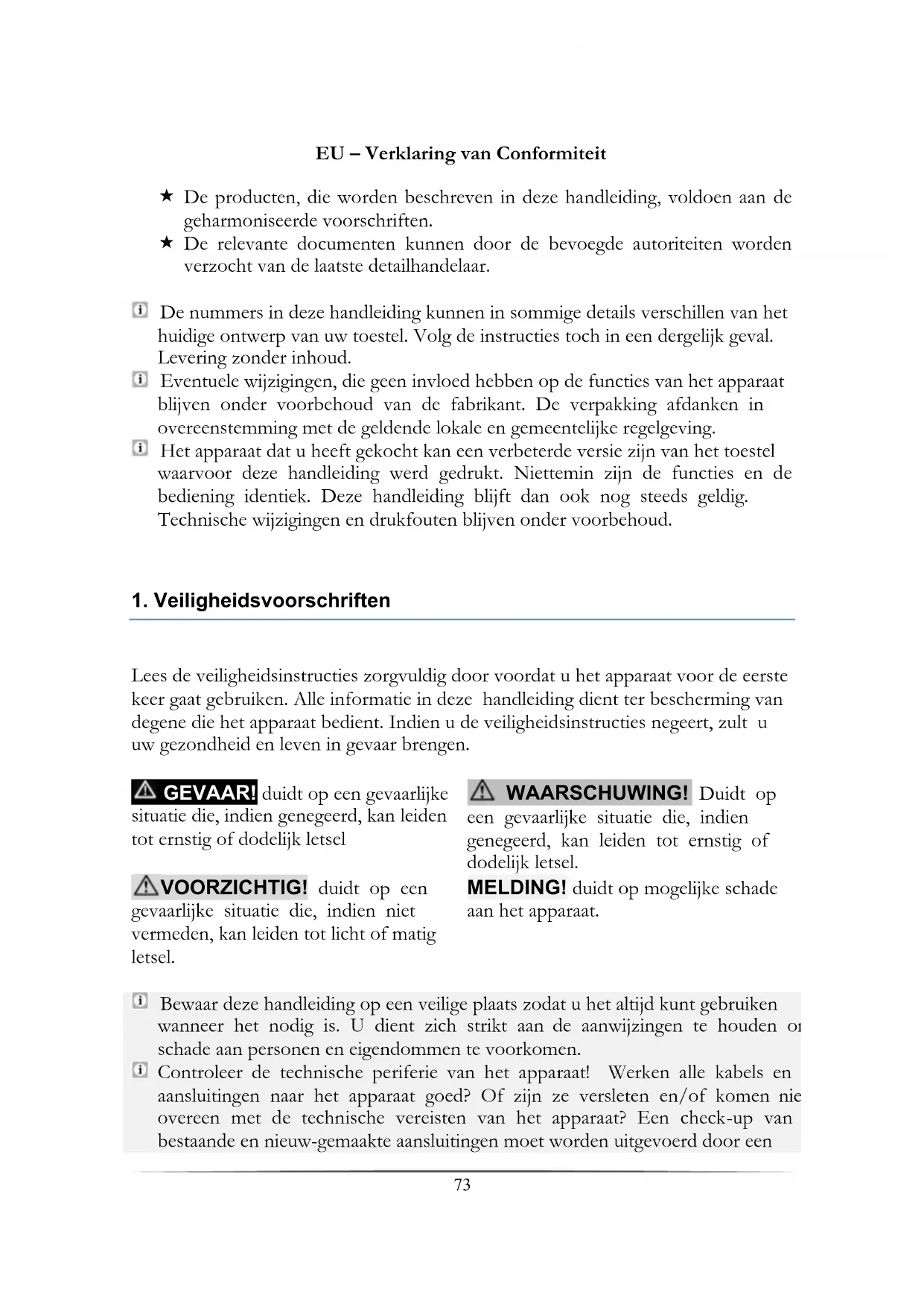1. Veiligheidsvoorschriften