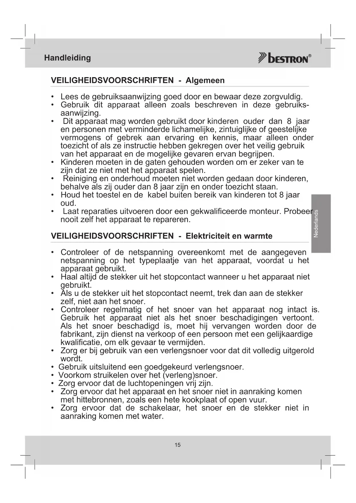 Nederlands VEILIGHEIDSVOORSCHRIFTEN - Algemeen