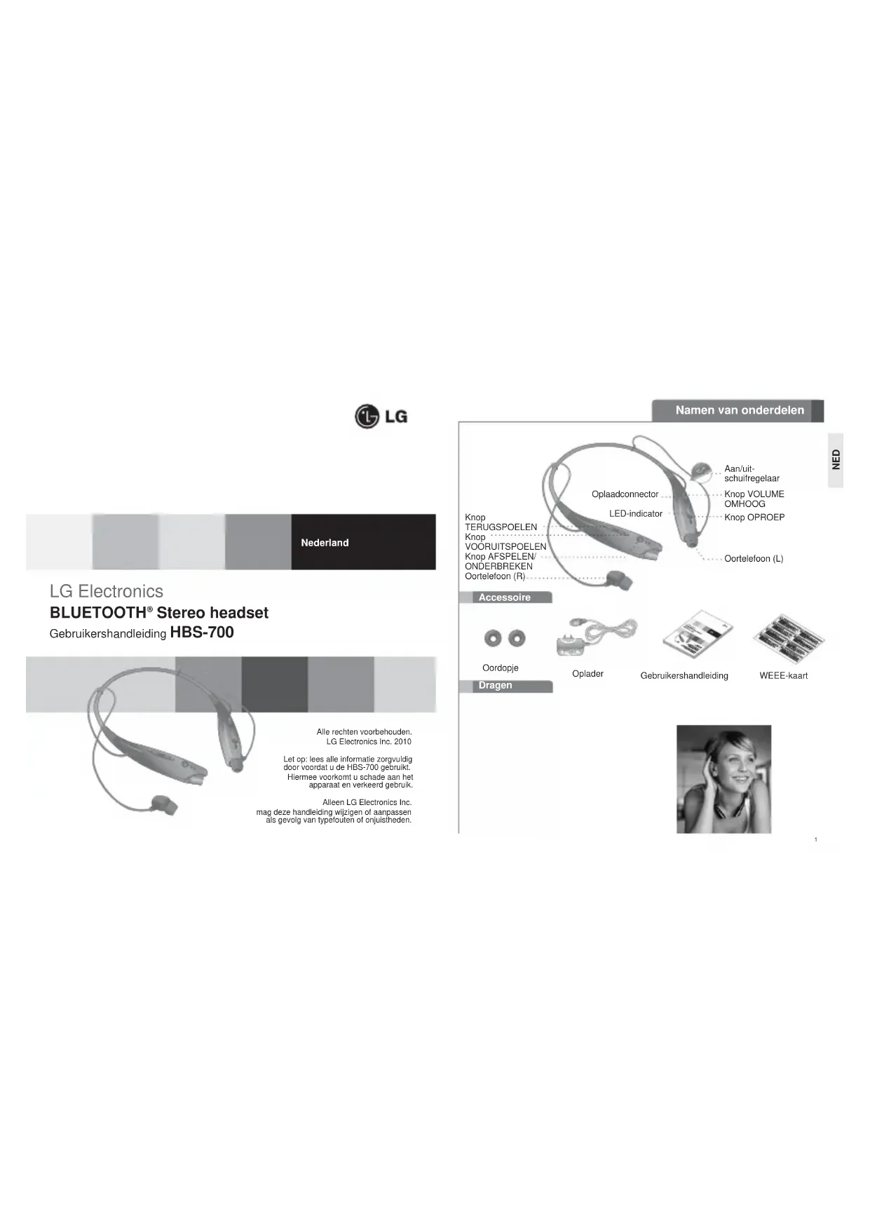 Stereo headset Gebruikershandleiding HBS-700 Nederland Dragen Accessoire Namen van onderdelen