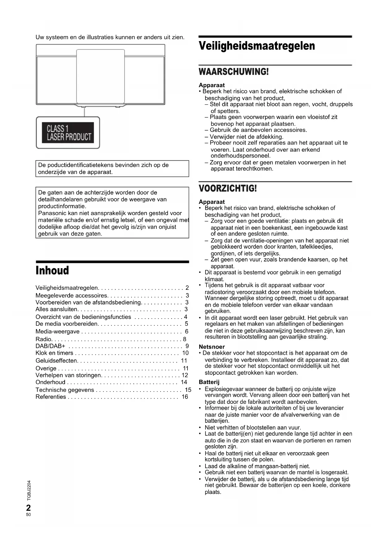 - TQBJ2204 Uw systeem en de illustraties kunnen er anders uit zien. Inhoud Veiligheidsmaatregelen p. 2