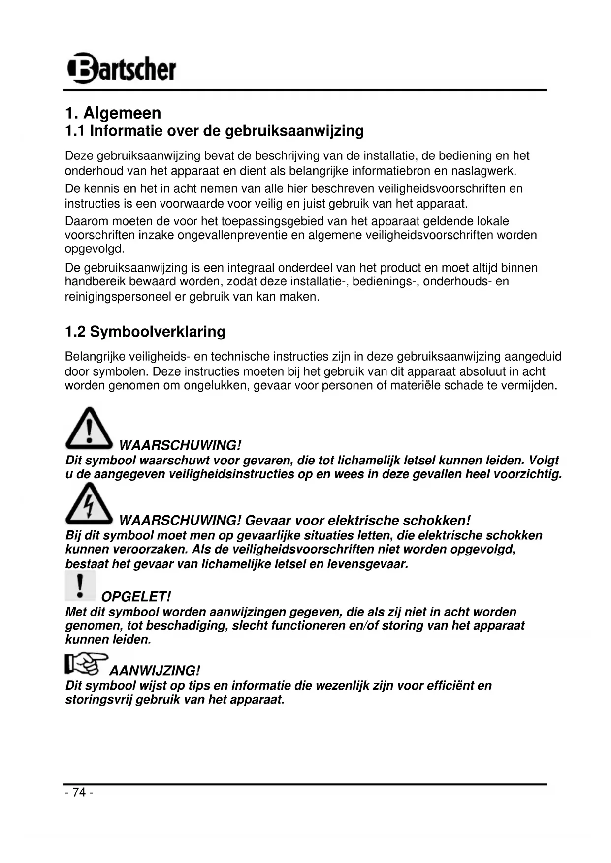 GEBRUIKSAANWIJZING IV65 BARTSCHER