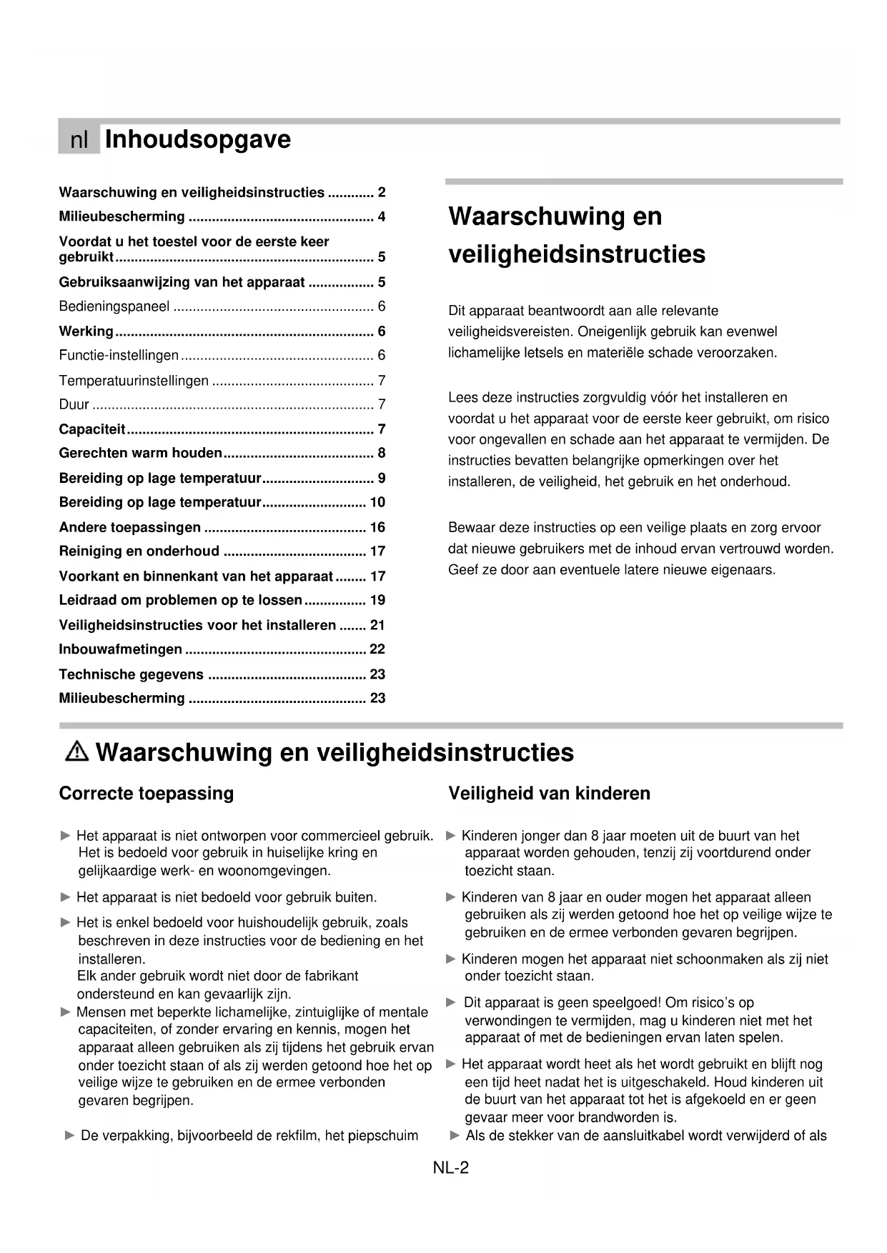 - Waarschuwing en veiligheidsinstructies p. 2