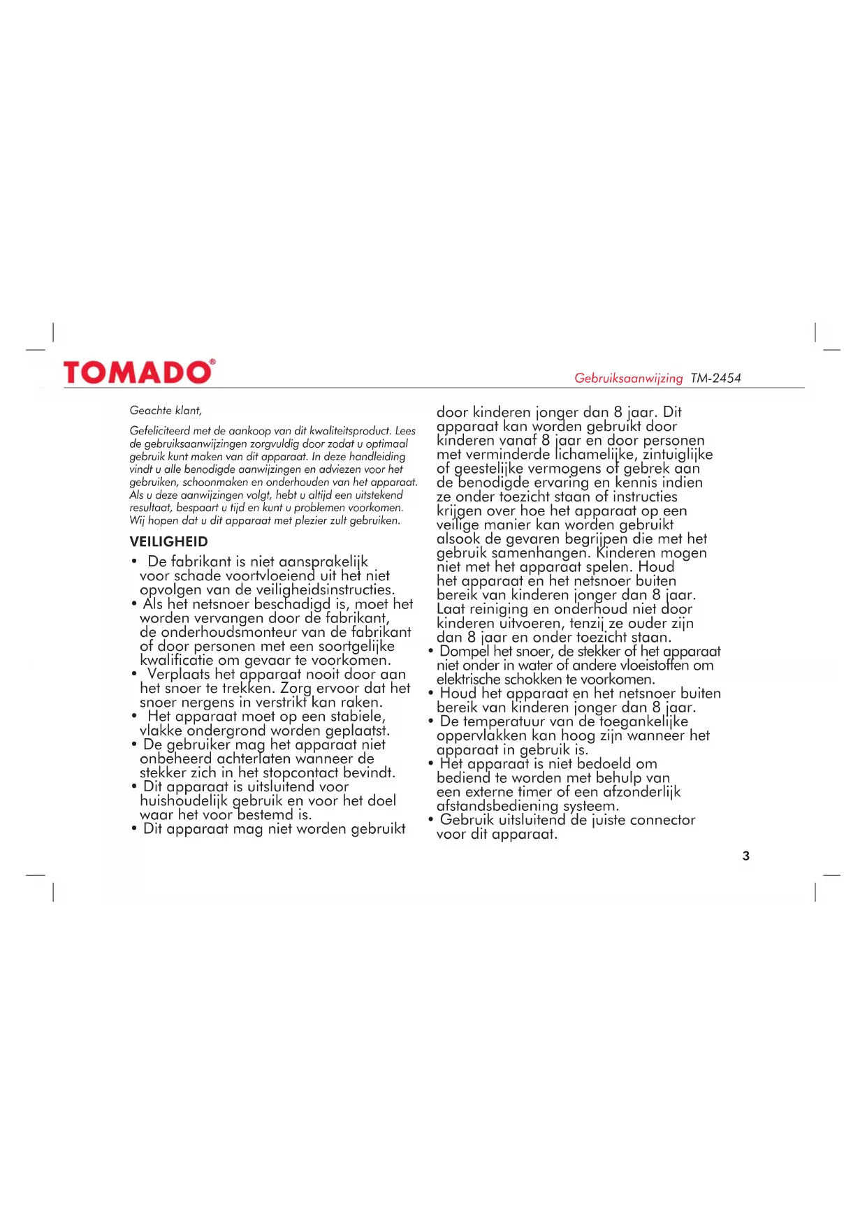 GEBRUIKSAANWIJZING TM2454 Tomado
