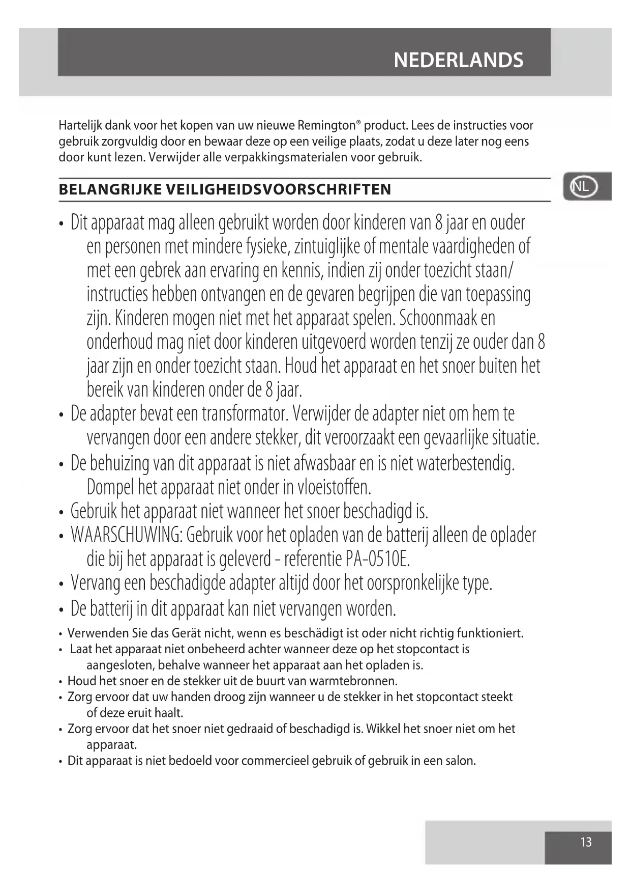 GEBRUIKSAANWIJZING Style Series B5 REMINGTON