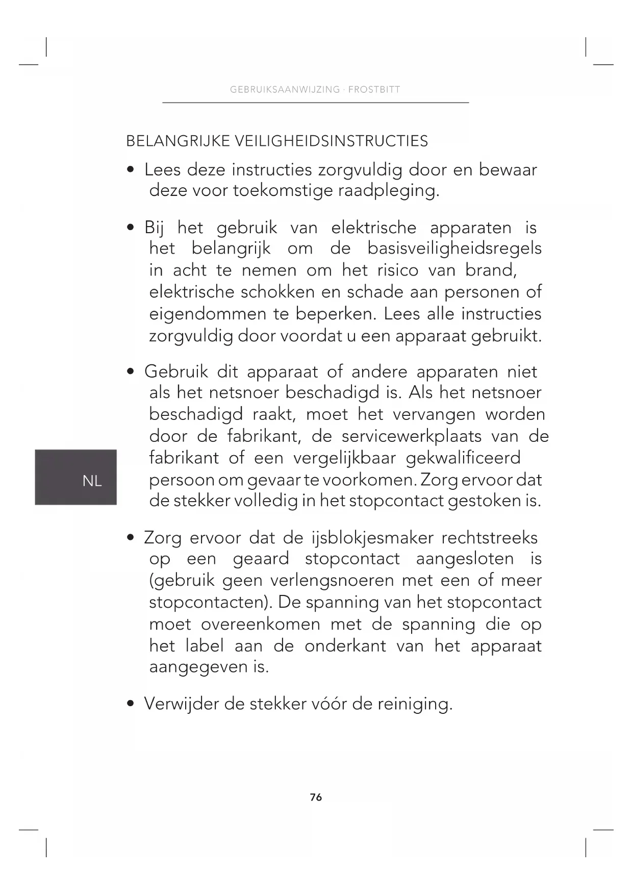 GEBRUIKSAANWIJZING · FROSTBITT75