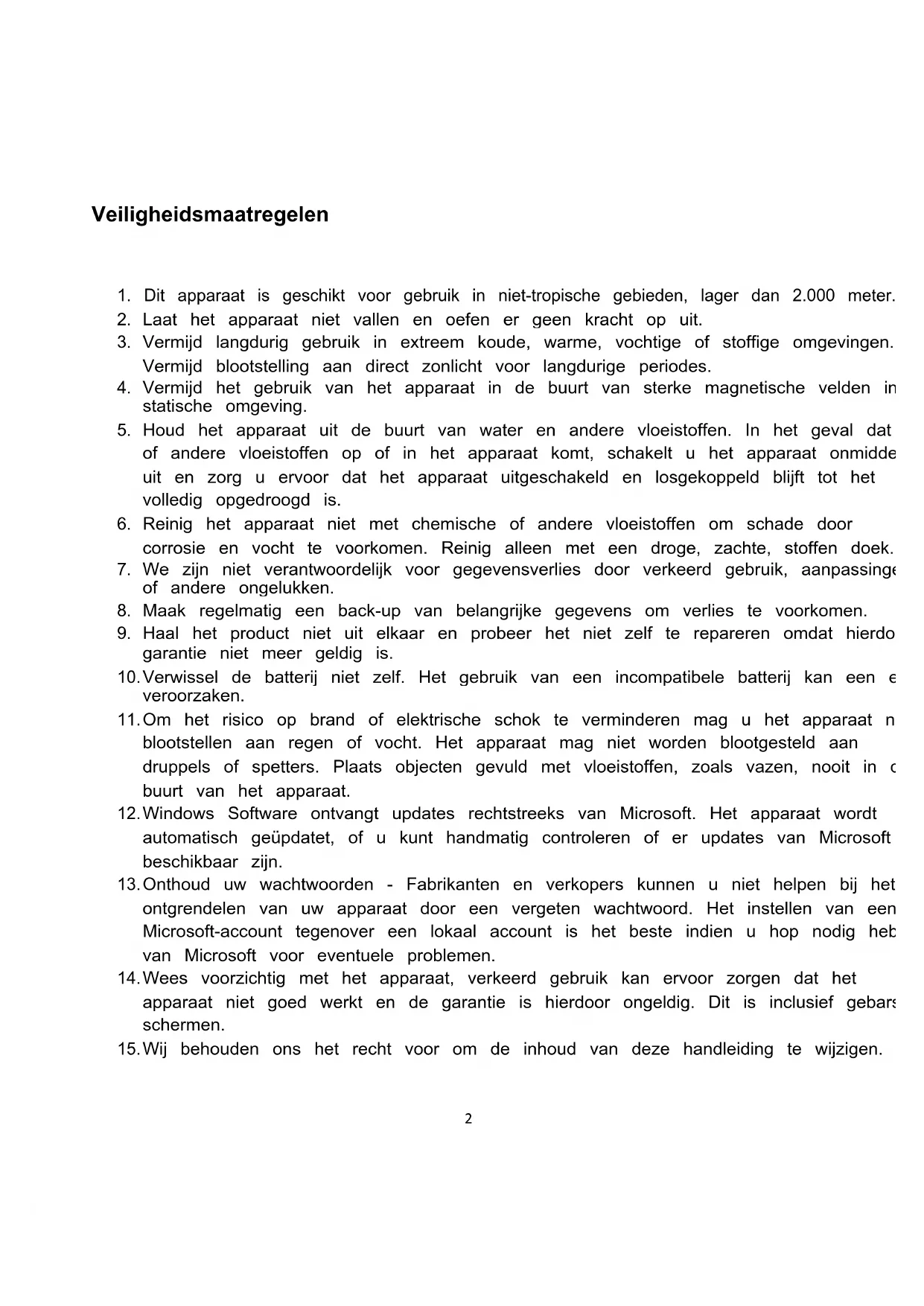 1. Dit apparaat is geschikt voor gebruik in niet-tropische gebieden, lager dan 2.000 meter.