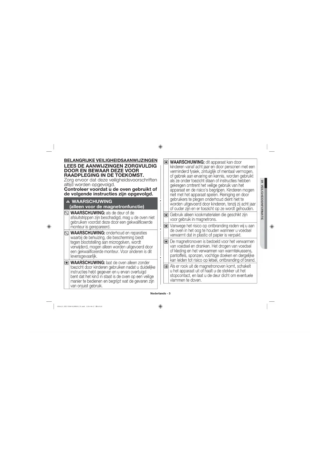 WAARSCHUWING:That de oven alleen zonder toezicht door kinderen gebruiken nadat u duidelijkke instructies hebte gevegen en u ervan overtuigd bent dat het kind in staat is de oven op een veilige manier te bedieren en begrijpt wat de bevaren zich van onjuist gebruik.