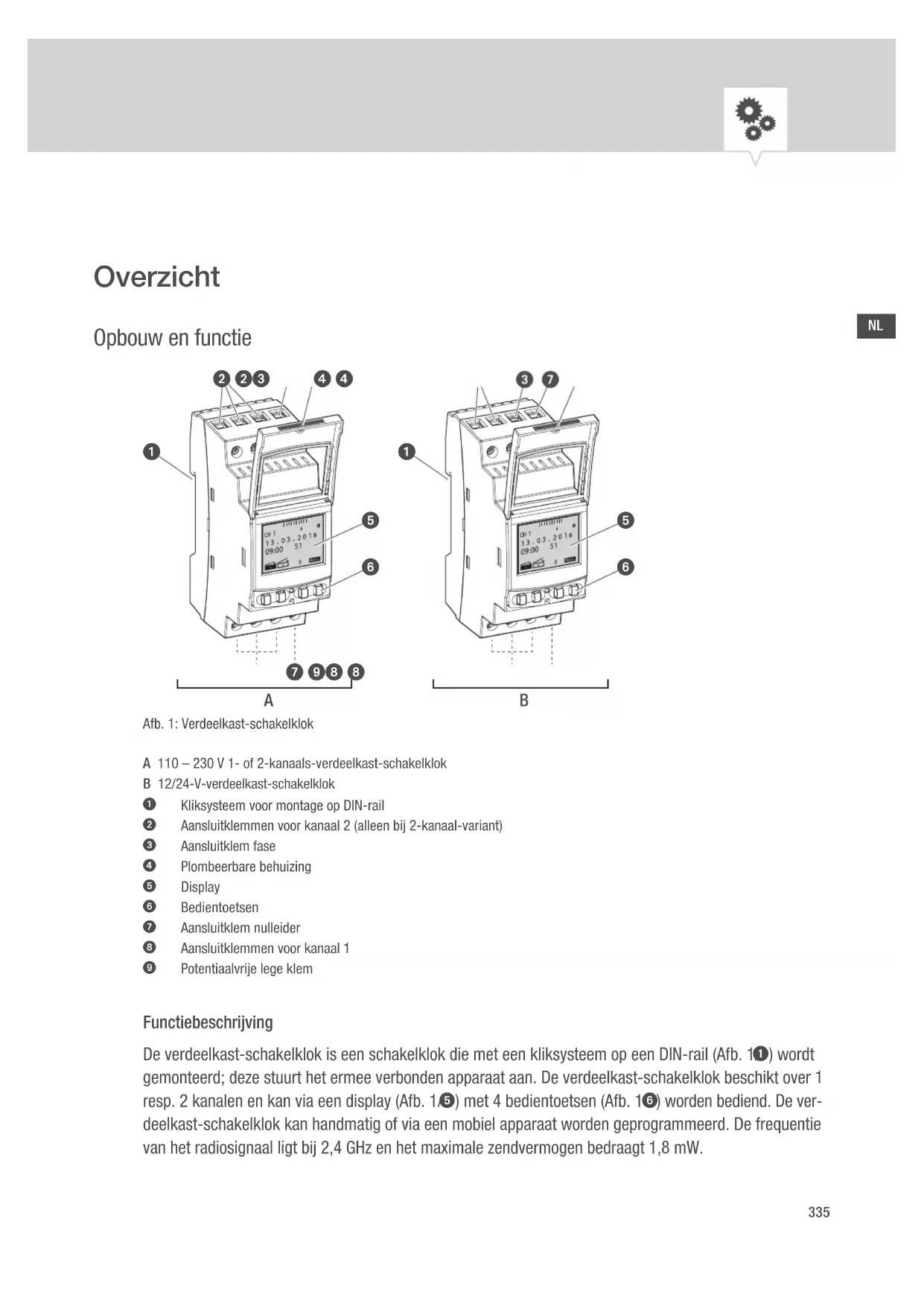 Overzicht Opbouw en functie Afb. 1: Verdeelkast-schakelklok A 110 – 230 V 1- of 2-kanaals-verdeelkast-schakelklok B 12/24-V-verdeelkast-schakelklok