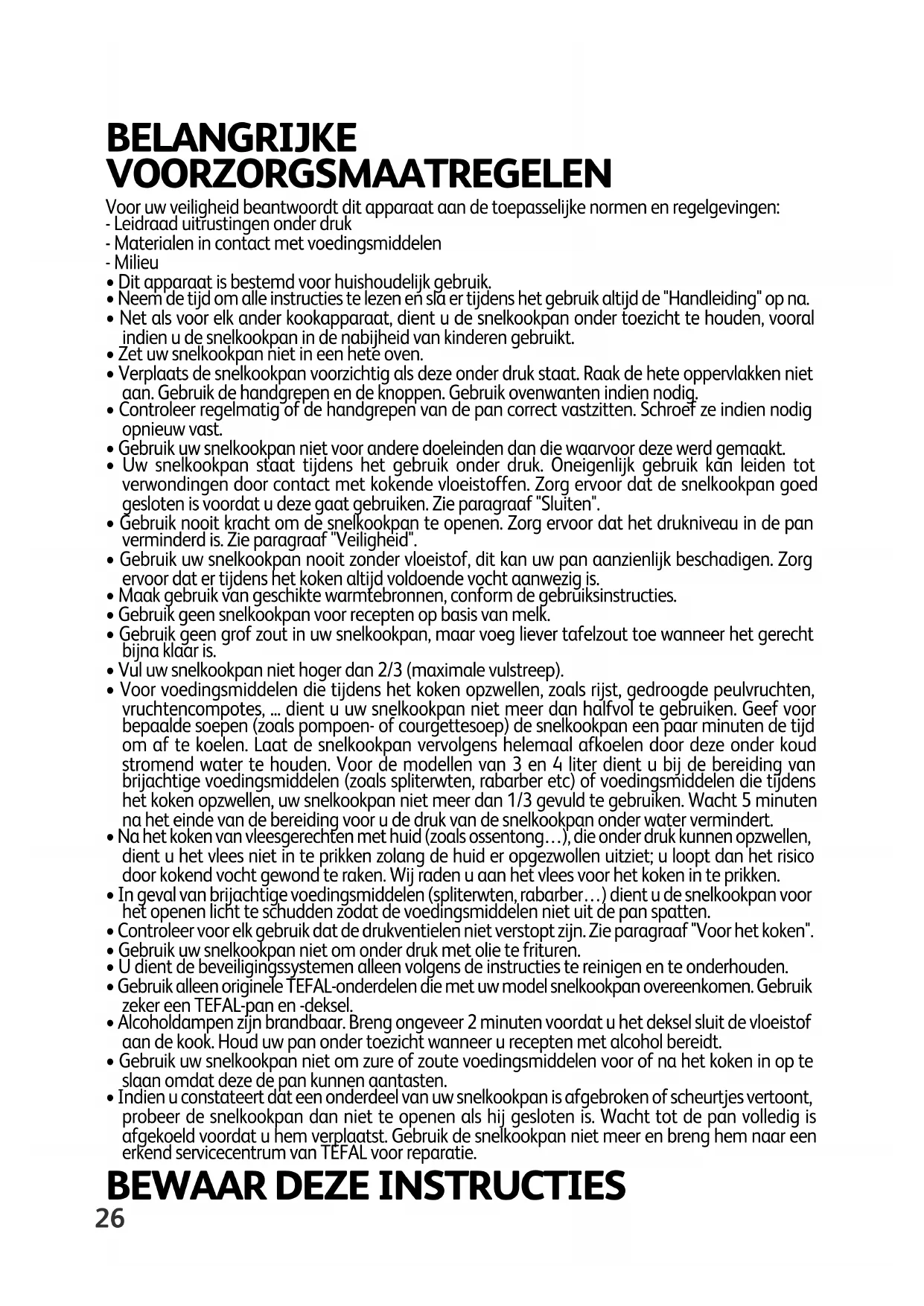 - Gebruik uw snelkookpan niet voor andere doeleinden dan die waarvoor deze werd gemaakt.