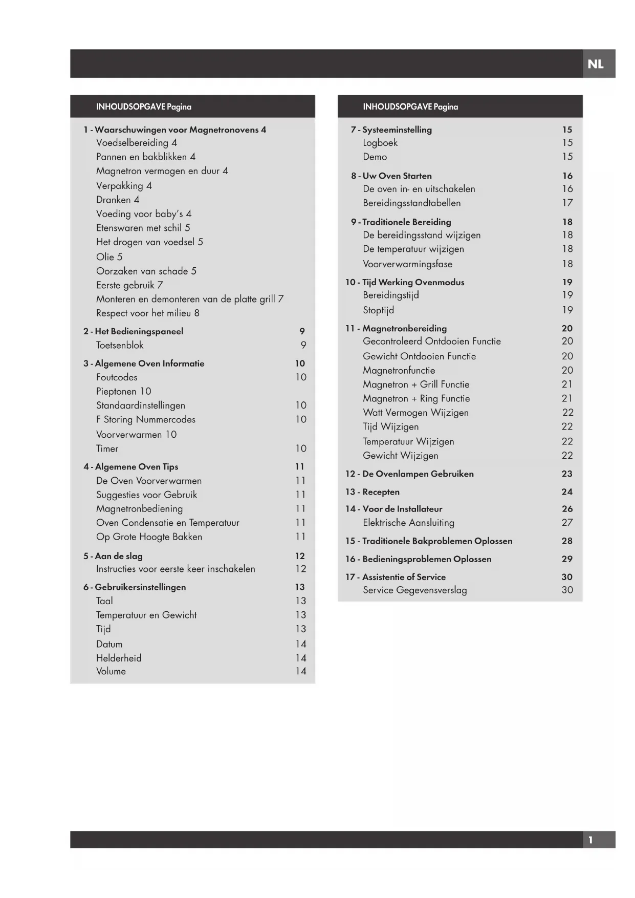 De oven in- en uitschakelen 16 Bereidingsstandtabellen 17