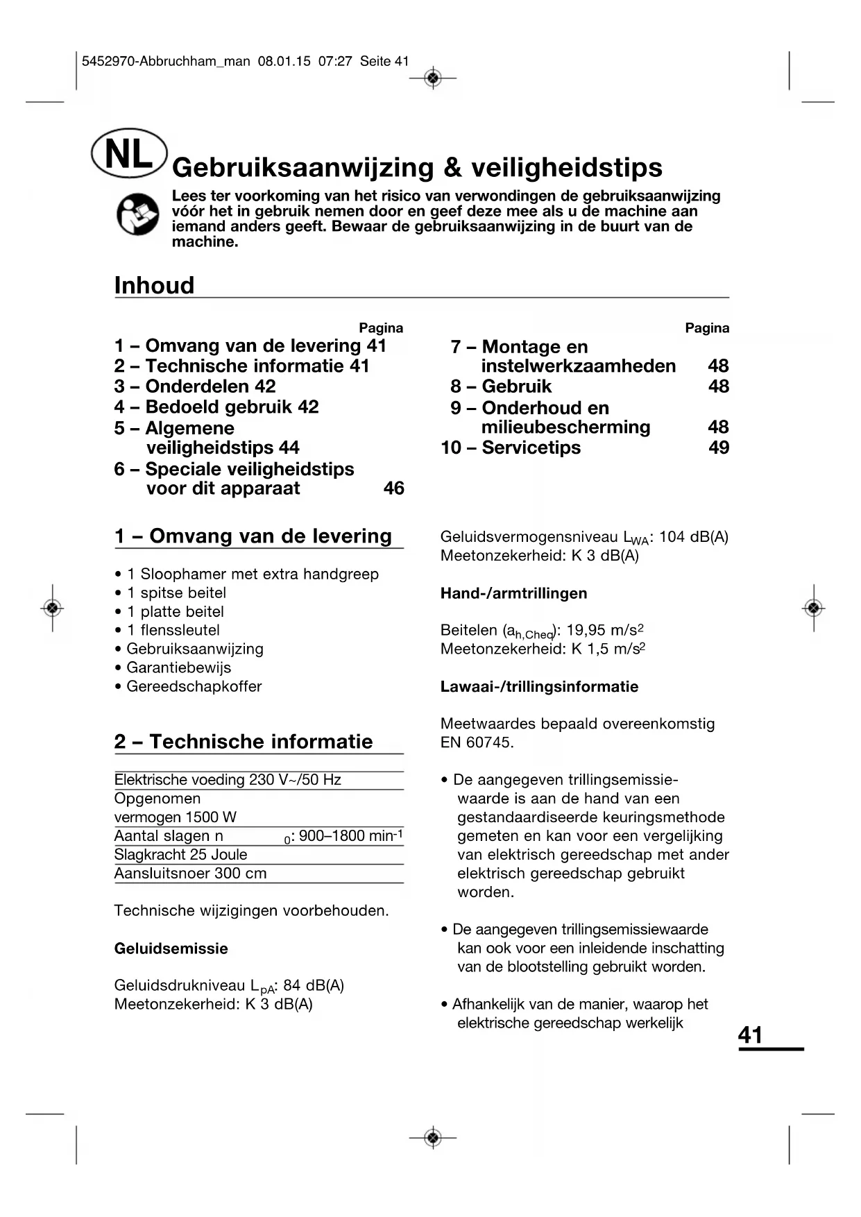 1 - Omvang van de levering 41