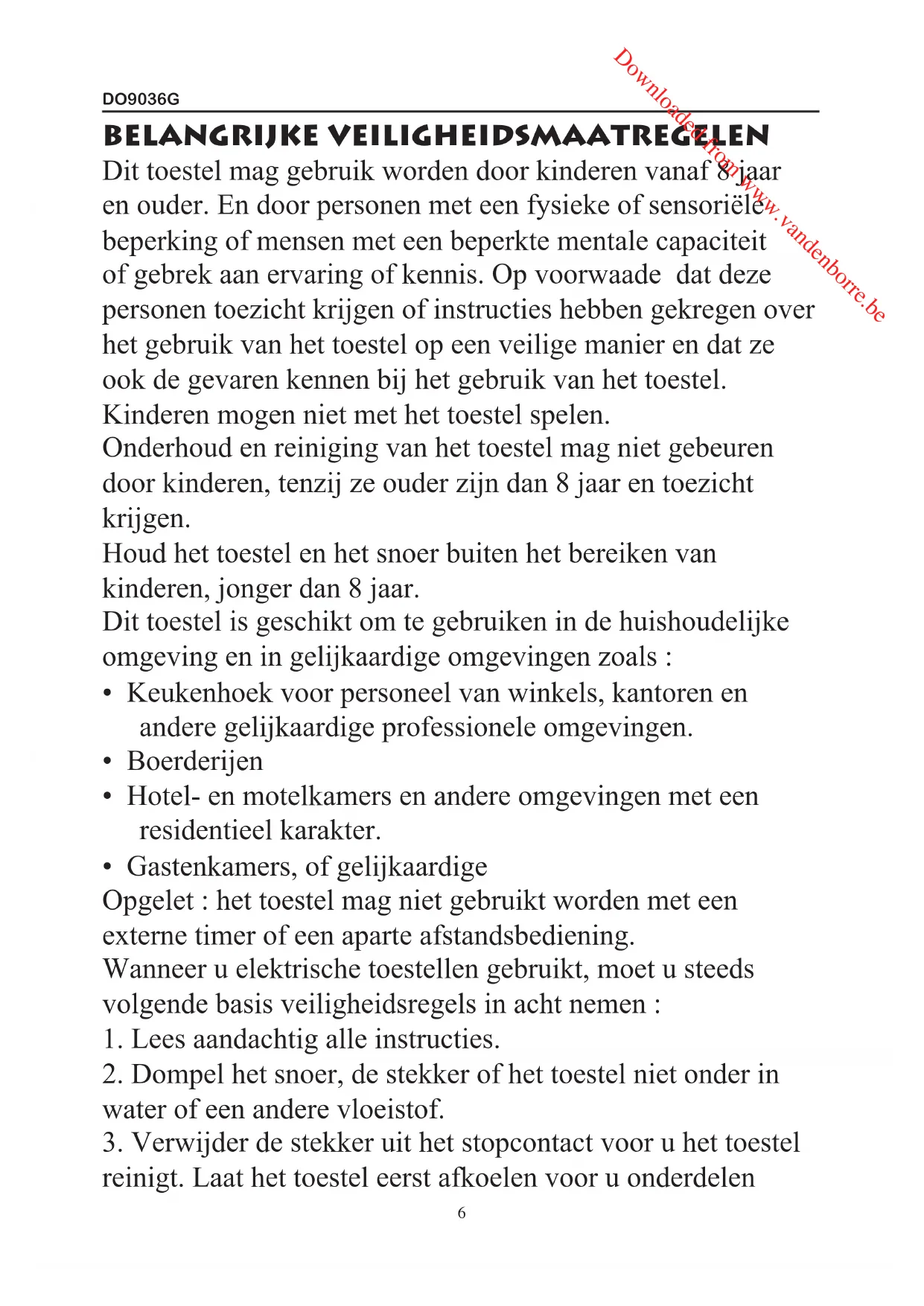 Downloaded from www.vandenborre.beDO9036G plaatst of wegneemt en voor u het toestel schoonmaakt.