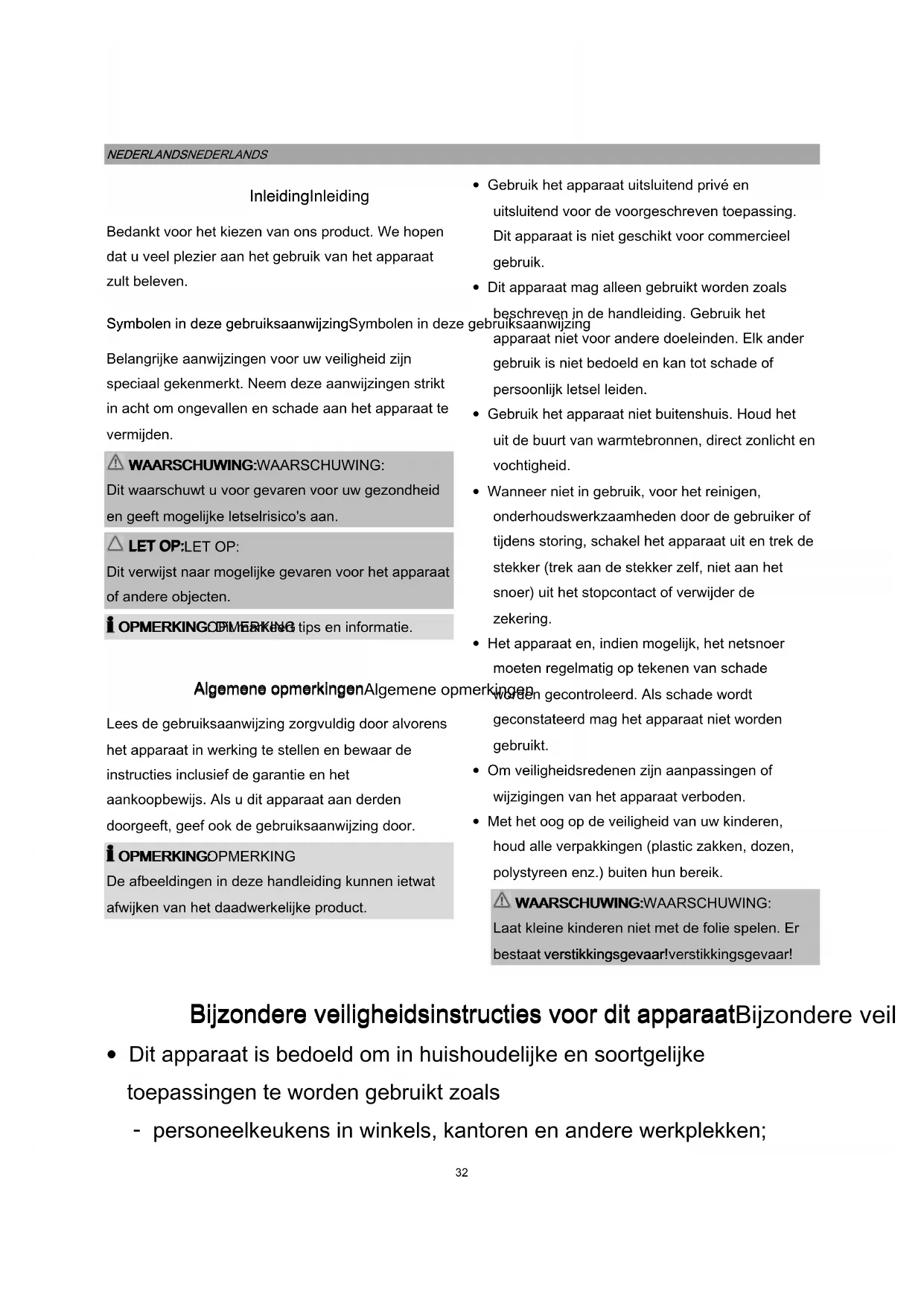 Bijzondere veiligheidsinstructies voor dit apparaat Bijzondere veiligheidsinstructies voor dit apparaatBijzondere veiligheidsinstructies voor dit apparaat Bijzondere veiligheidsinstructies voor dit apparaat