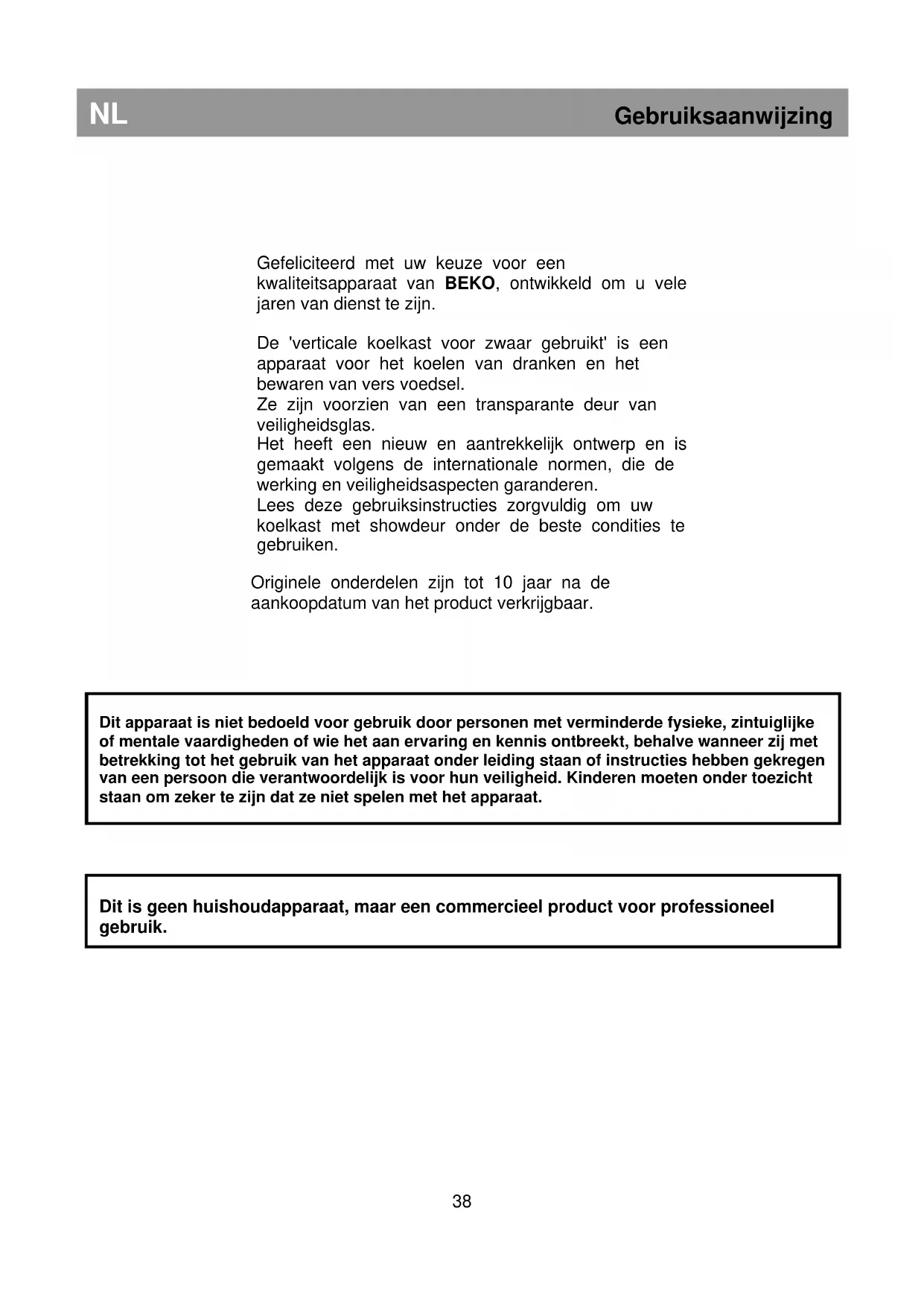 Dit apparaat is niet bedoeld voor gebruik door personen met verminderde fysieke, zintuiglijke of mentale vaardigheden of wie het aan ervaring en kennis ontbreekt, behalve wanneer zij met betrekking tot het gebruik van het apparaat onder leiding staan of instructies hebben gekregen van een persoon die verantwoordelijk is voor hun veiligheid. Kinderen moeten onder toezicht staan om zeker te zijn dat ze niet spelen met het apparaat.