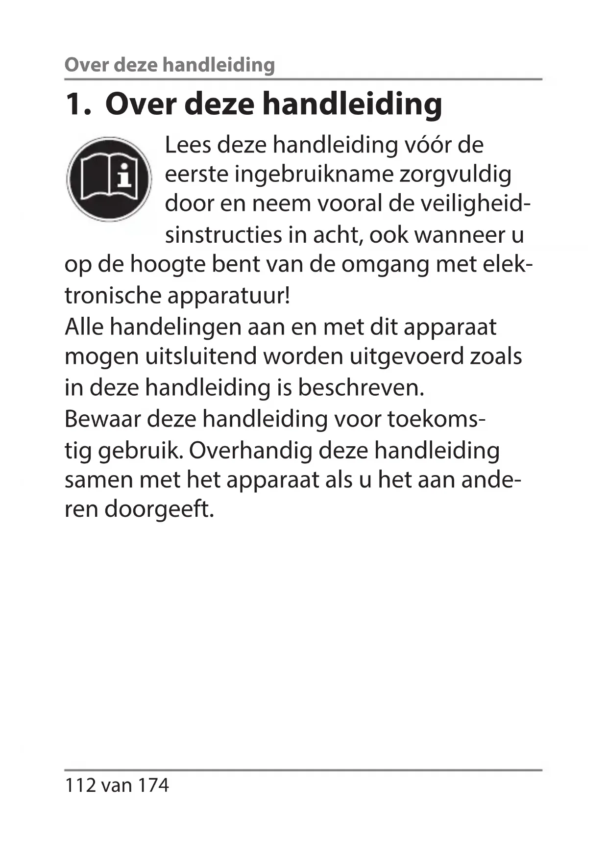 1.1. In deze handleiding gebruikte waarschuwingspictogrammen en -woorden ...............................................113 1.2. Gebruik voor het beoogde doel ..........114