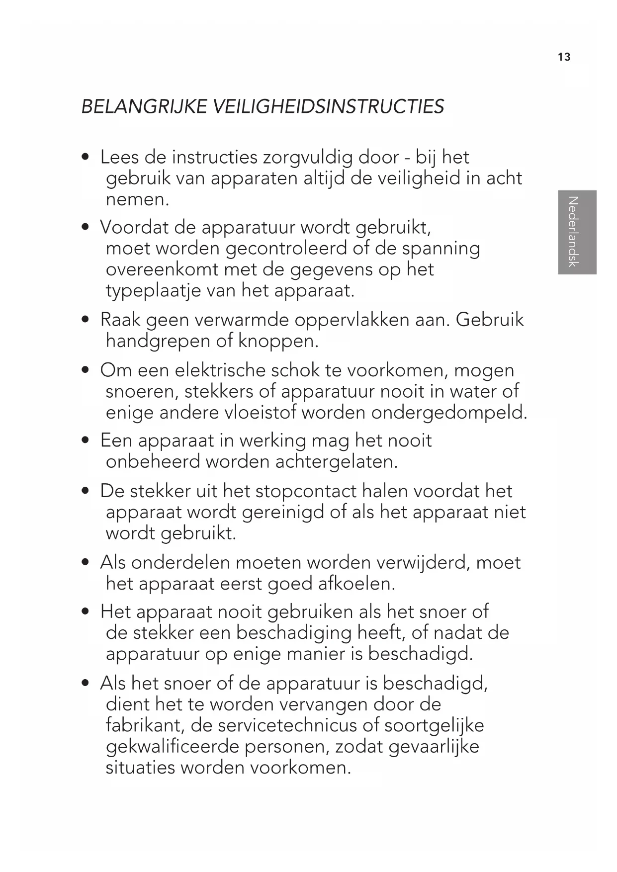 - Een apparaat in werking mag het nooit onbeheerd worden achtergelaten.