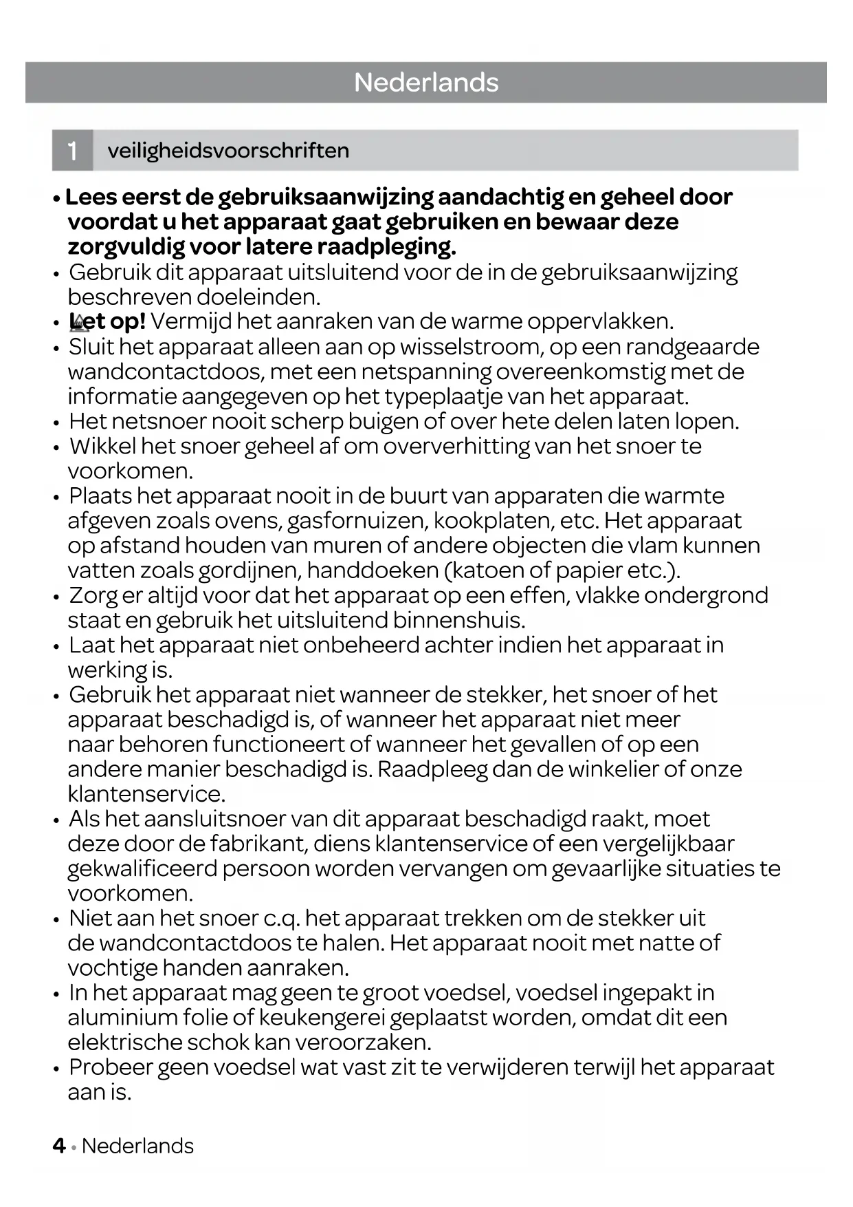 - Probeer geen voedsel wat vast zit te verwijderen terwijl het apparaat aan is.Nederlands • 5