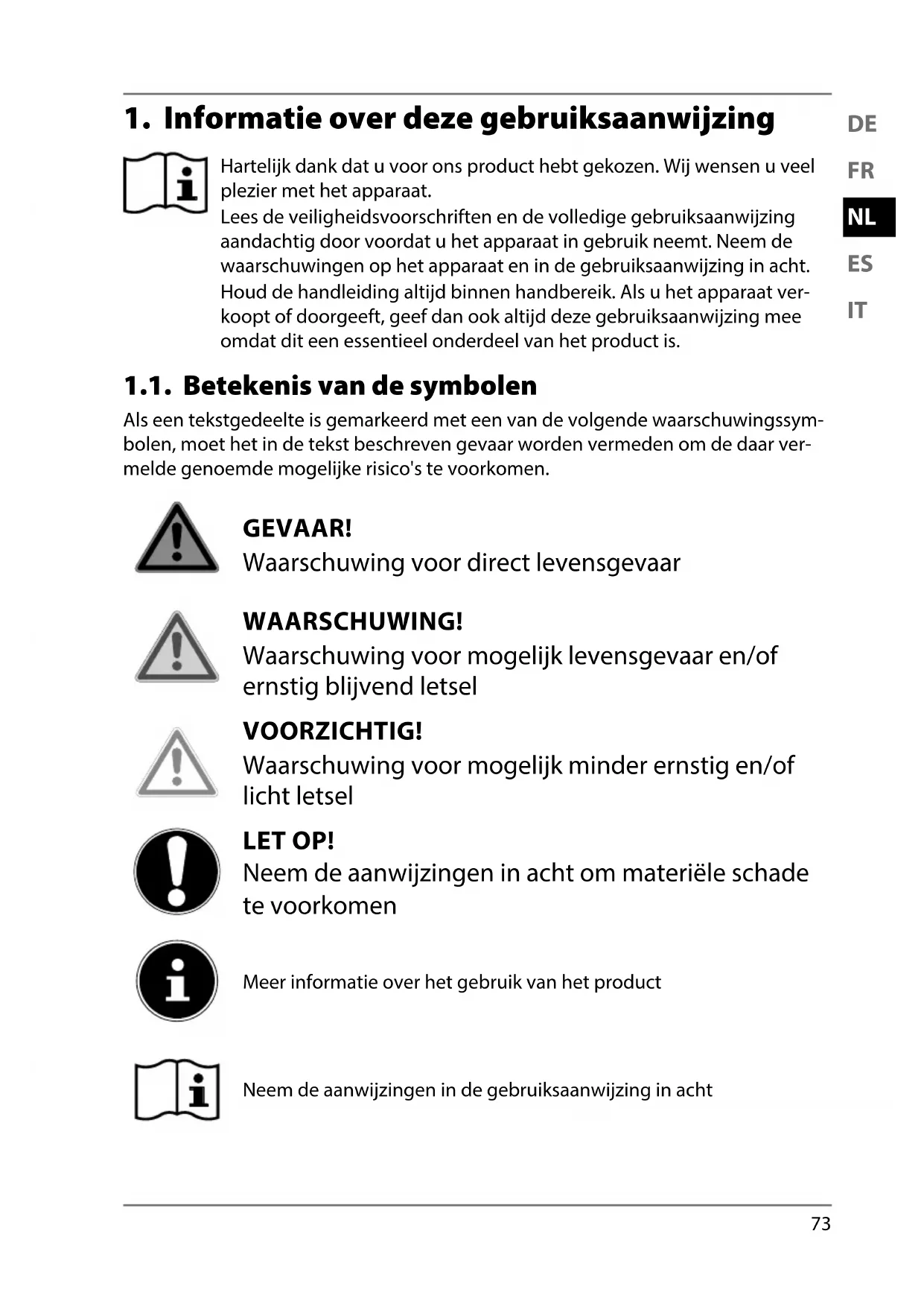 1. Informatie over deze gebruiksaanwijzing ............................................... 73
