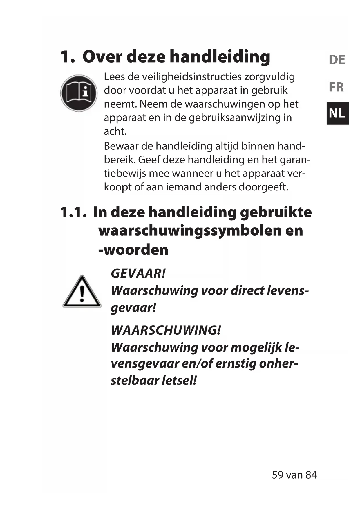 1.1. In deze handleiding gebruikte waarschuwingssymbolen en -woorden ................................................59