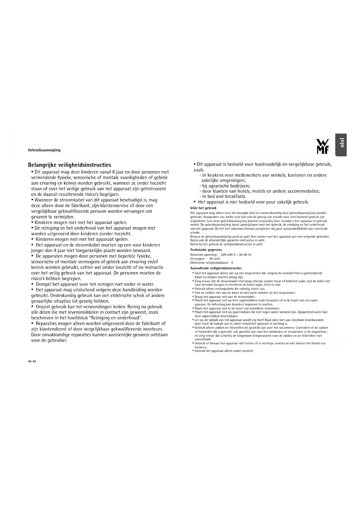 GEBRUIKSAANWIJZING Lono 04.1907.0011 WMF