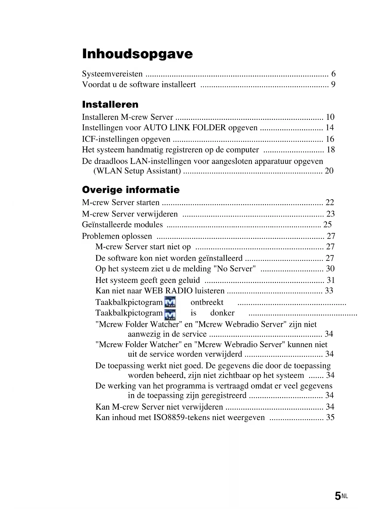 - M-crew Server kan alleen worden gebruikt door gebruikers met de toegangsrechten van een systeembeheerder.