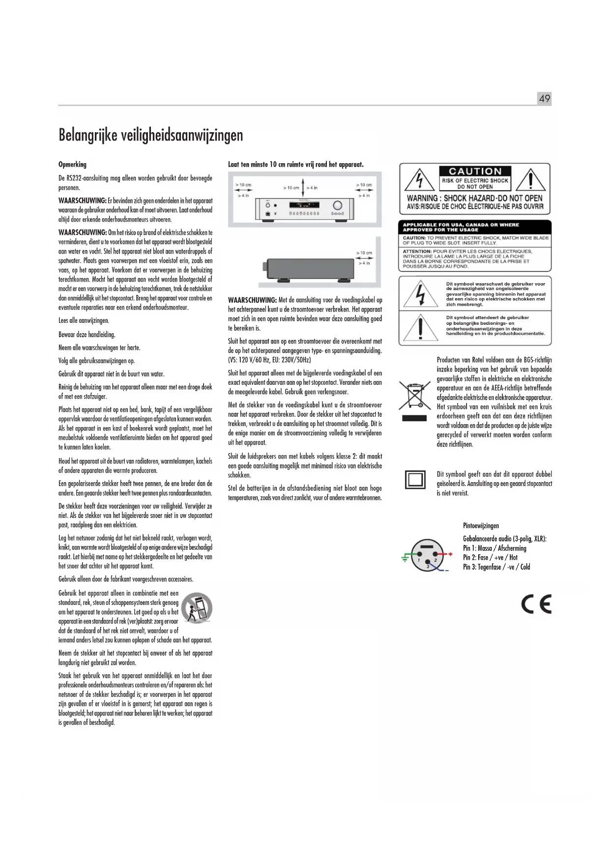 Producten van Rotel voldoen aan de BGS-richtlijn inzake beperking van het gebruik van bepaalde gevaarlijke stoffen in elektrische en elektronische apparatusu en aan de AEEA-richlijn betreffende afgedankte elektrische en elektronische apparatusu. Het symbol van een vuilnisbak met een kruis erdoorheen geeft aan dat aan deze richtlijnen wordt voldaan en dat de producten op de juiste wijze gerecycled of verwerkto moeten worden conform deze richtlijnen.