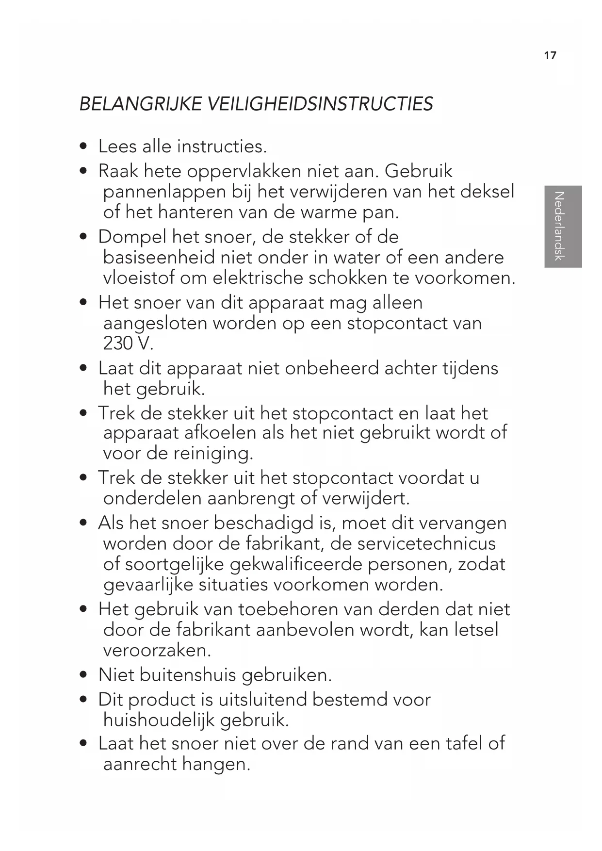 - Laat het snoer niet over de rand van een tafel of aanrecht hangen.Nederlandsk Nederlandsk