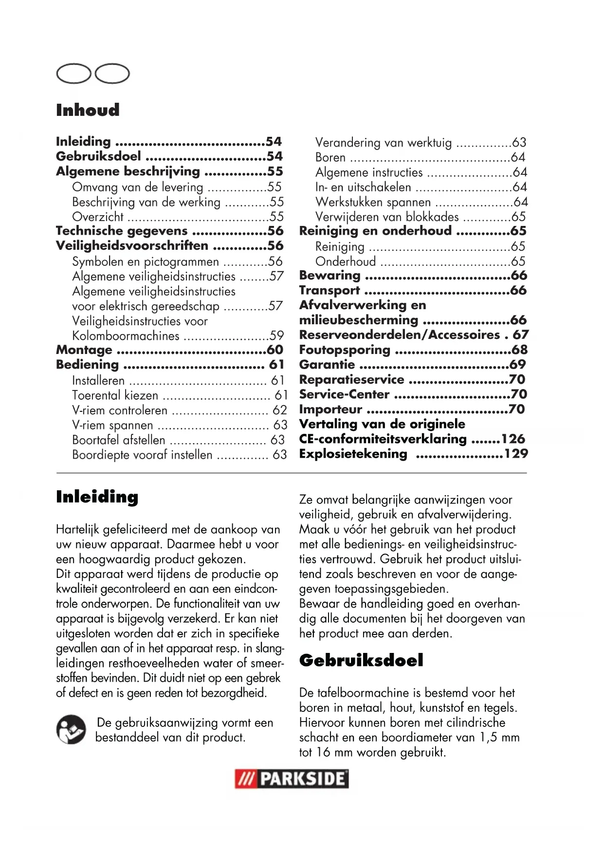 Download de handleiding voor uw Boor in PDF-formaat gratis! Vind uw handleiding PTBM 500 C3 - PARKSIDE en neem uw elektronisch apparaat weer in handen. Op deze pagina staan alle documenten die nodig zijn voor het gebruik van uw apparaat. PTBM 500 C3 van het merk PARKSIDE.