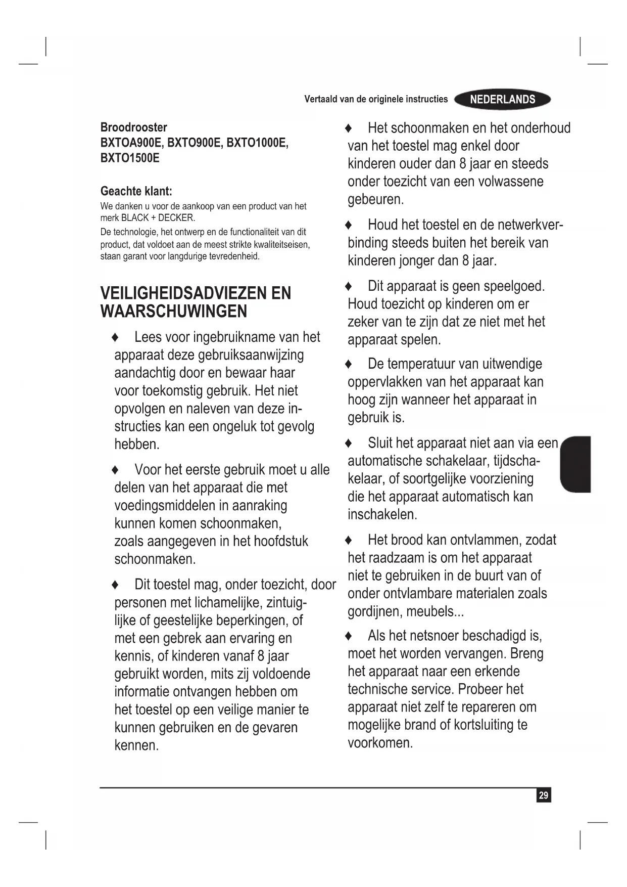 GEBRUIKSAANWIJZING BXTOA900E BLACK & DECKER