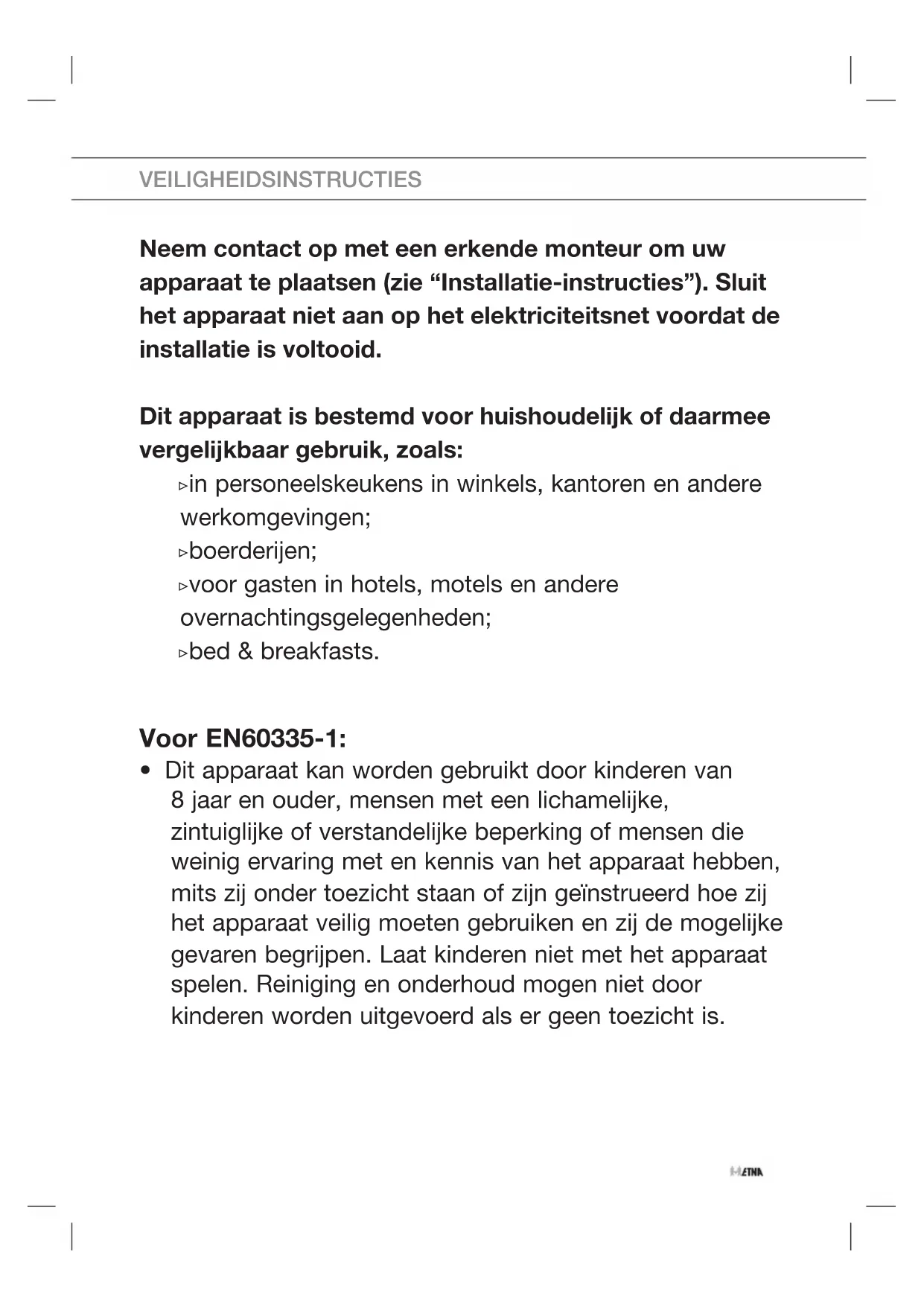 GEBRUIKSAANWIJZING VW47SM ETNA