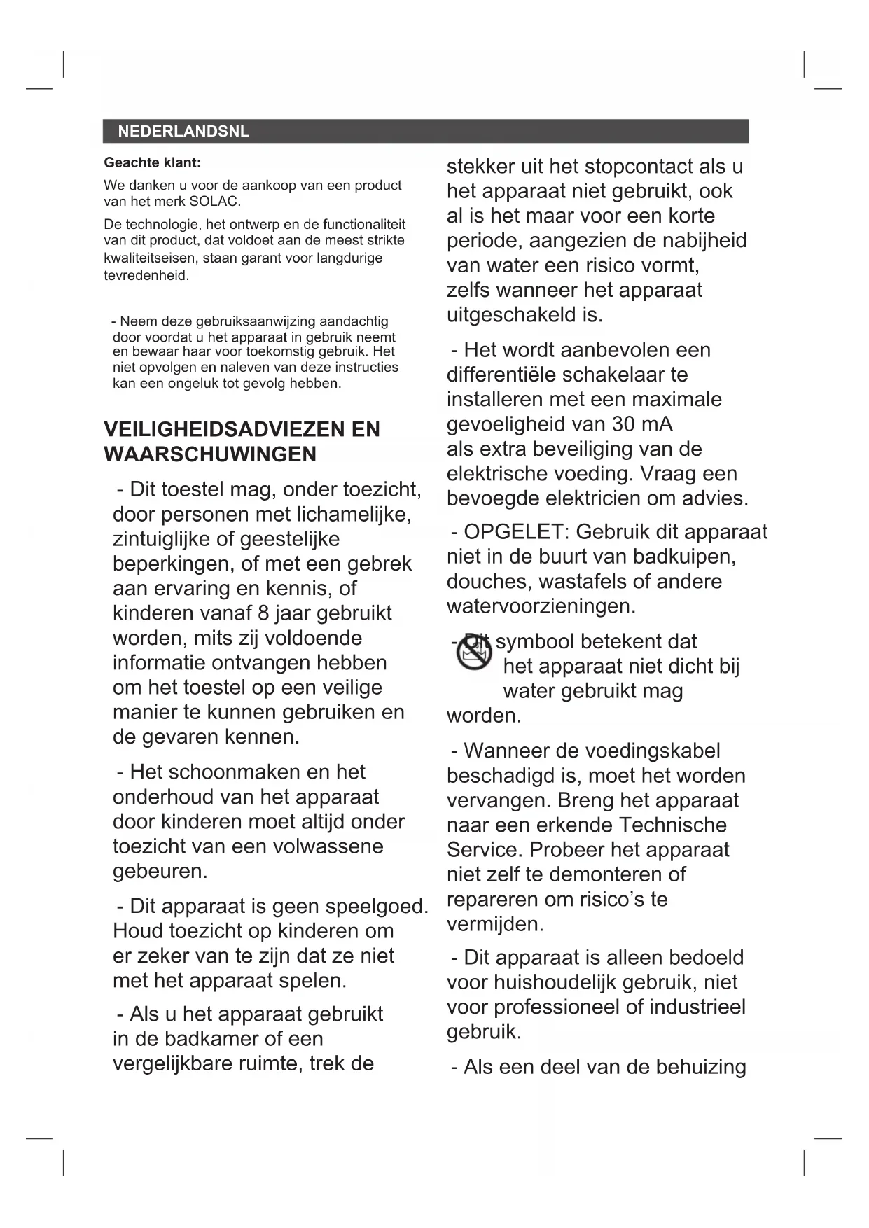 We danken u voor de aankoop van een product van het merk SOLAC.