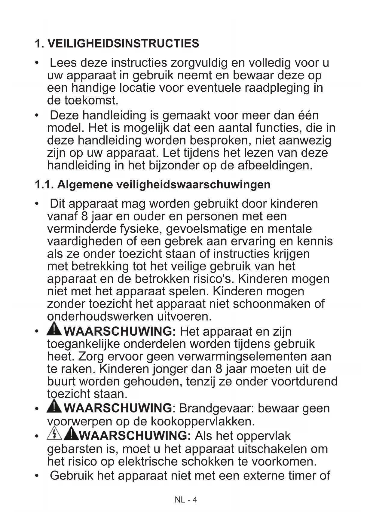 - Hang geen handdoeken, vaatdoeken of kleding aan het apparaat of de handvaten.NL - 9 1.4. Tijdens reiniging en onderhoud