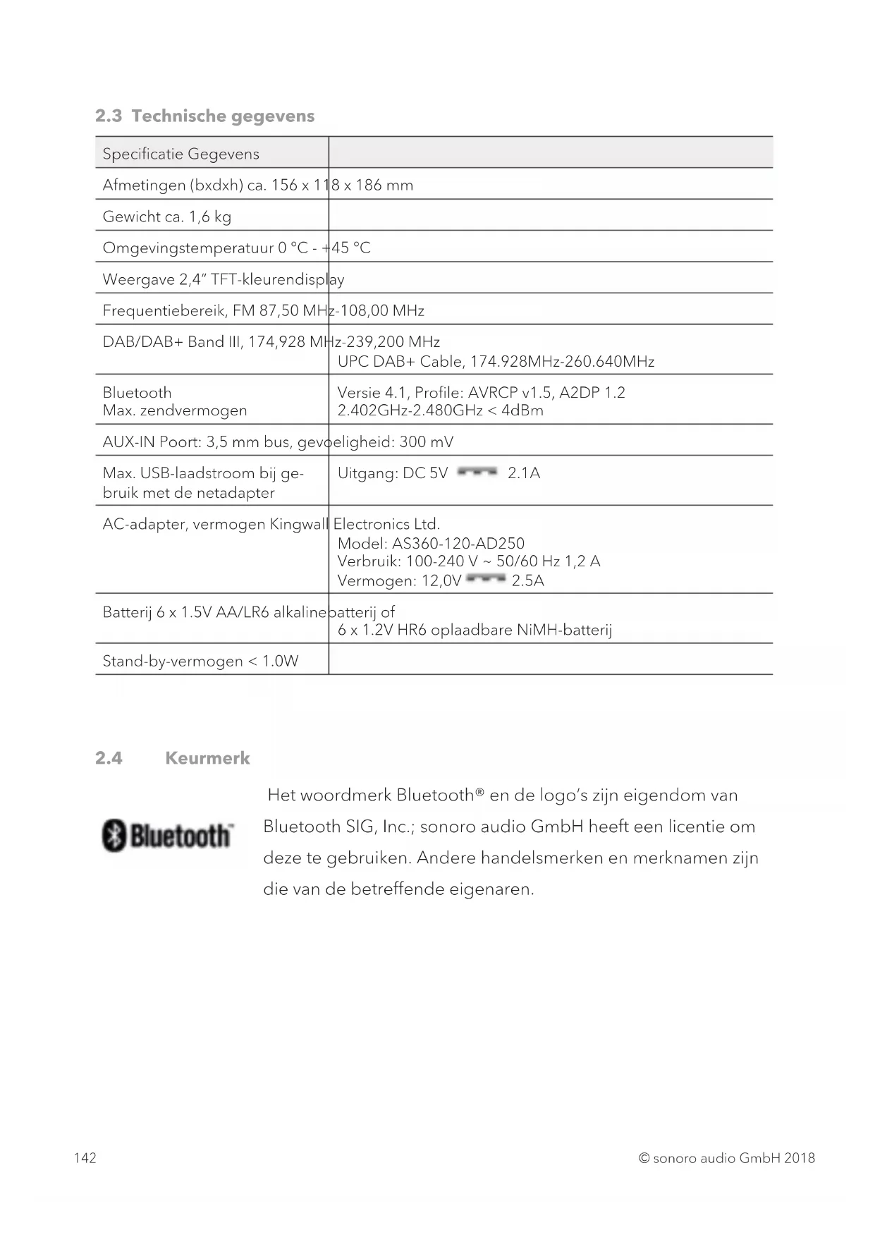 Het woordmerk Bluetooth® en de logo’s zijn eigendom van Bluetooth SIG, Inc.; sonoro audio GmbH heeft een licentie om deze te gebruiken. Andere handelsmerken en merknamen zijn die van de betreffende eigenaren.© sonoro audio GmbH 2018 143