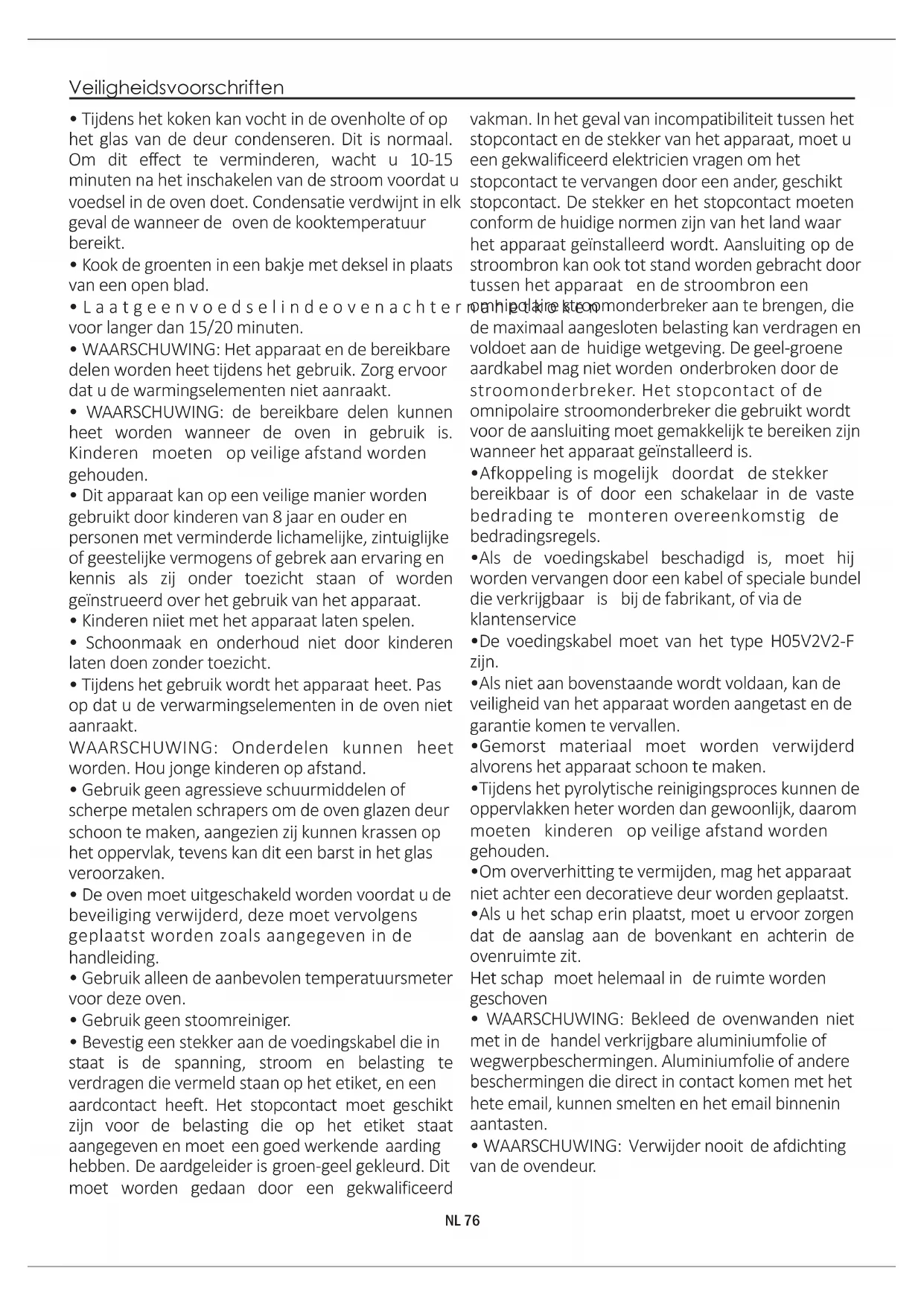 - WAARSCHUWING: Verwijder nooit de afdichting van de ovendeur. NL 76Inhoud NL 77 Avvertenze Generali